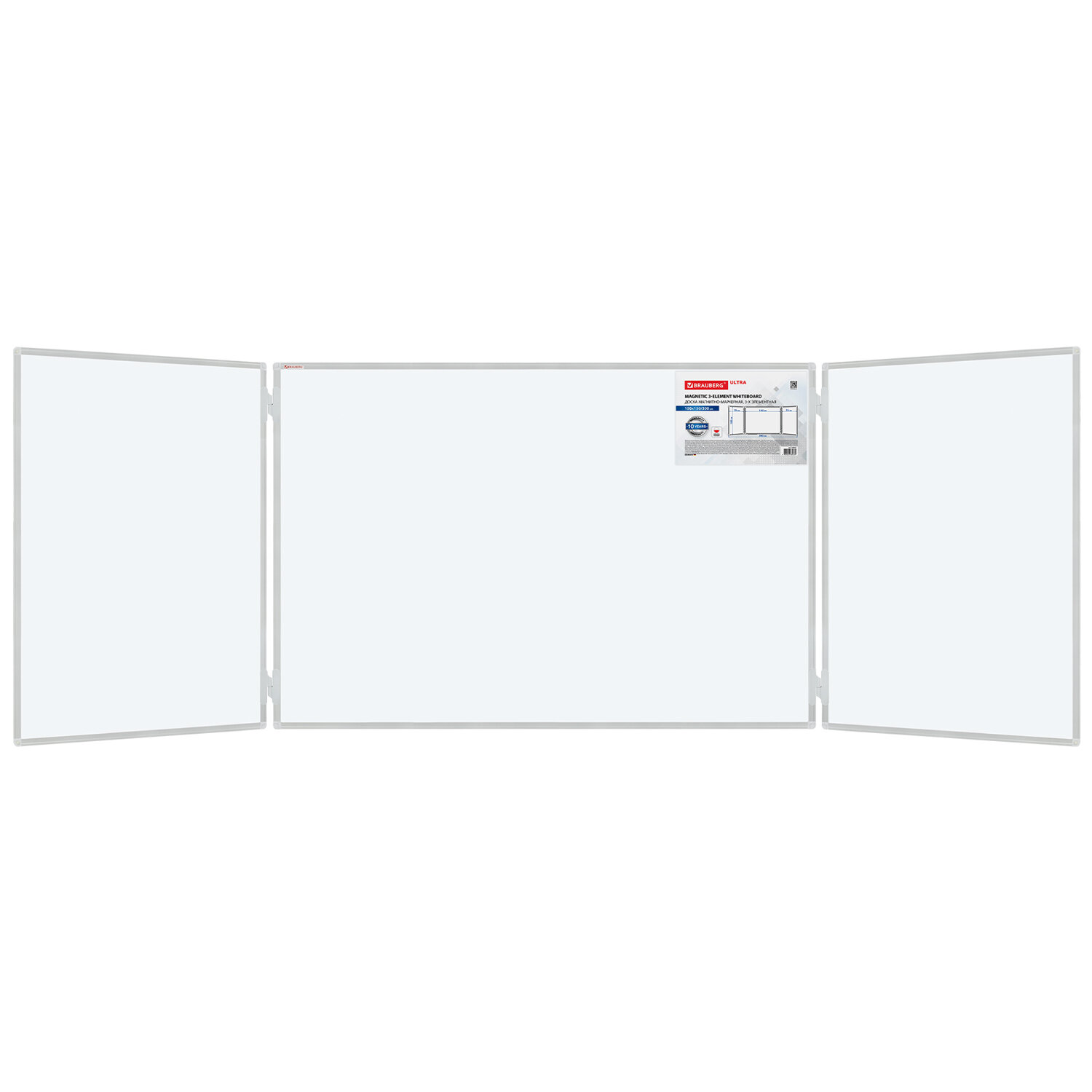 Описание Доска магнитно-маркерная Brauberg 3-элементная 100х150/300 см [238035] Трехэлементная настенная магнитно-маркерная доска BRAUBERG идеально подойдет для проведения совещаний, тренингов, презентаций и уроков в учебных, заведениях, офисах и других организациях. Трехэлементная магнитно-маркерная доска белого цвета имеет центральную одностороннюю секцию размером 100х150 см и две боковые секции - 100х75 см каждая. Лаковое покрытие предназначено для письма специальными маркерами для белой доски, а на металлической поверхности можно размещать информацию при помощи магнитов. Укрепленные пластиковые уголки позволяют скрыть места крепления к стене. Алюминиевый профиль придает изделию дополнительную прочность и современный стильный внешний вид. Задняя поверхность доски выполнена из стального оцинкованного листа, добавляя доске дополнительную прочность. Полочка для аксессуаров, держатели для бумаги и элементы крепления входят в комплект. При должном уходе за рабочей поверхностью доски при помощи чистящей жидкости-спрея и стирателей BRAUBERG поверхность магнитно-маркерной доски прослужит более 10 лет. Перед началом работы необходимо удалить защитную пленку с рабочей поверхности доски. 3-элементная магнитно-маркерная доска BRAUBERG поможет вам организовать свое рабочее пространство и улучшить производительность.
