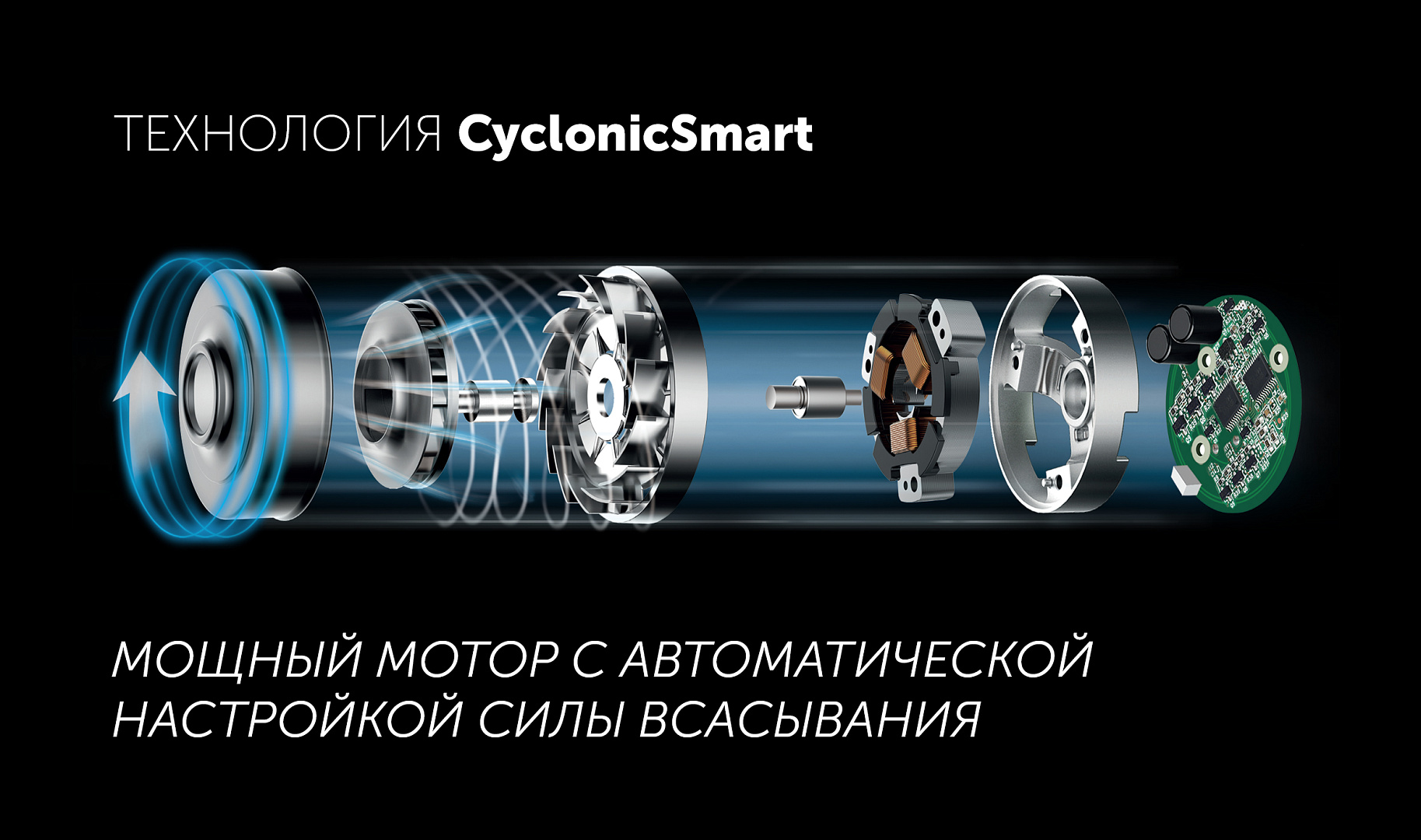 Благодаря LED-дисплею вы сможете контролировать состояние пылесоса и уровень заряда батареи. Особенность прибора в применении циклонической системе, что обеспечивает высокую эффективность уборки. НЕРА-фильтр удерживает мельчайшие частички пыли, аллергены, вредоносные микроорганизмы, создавая здоровый микроклимат в доме.