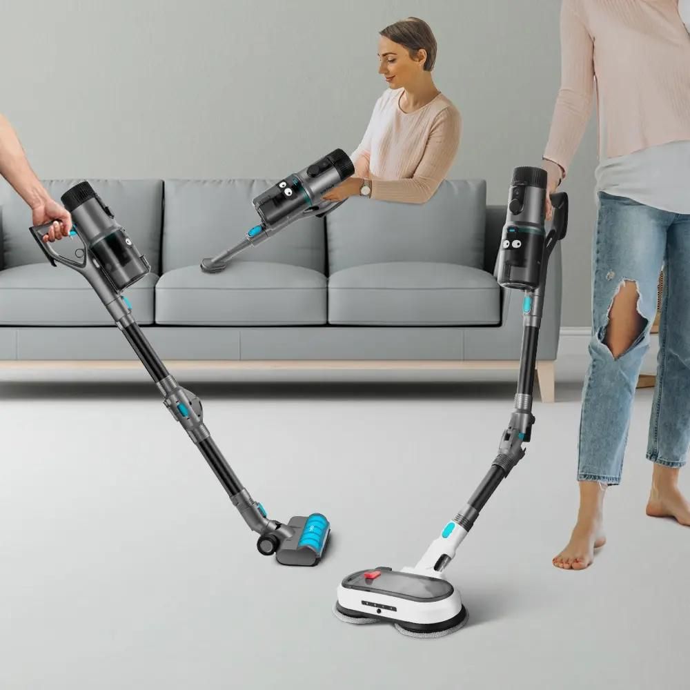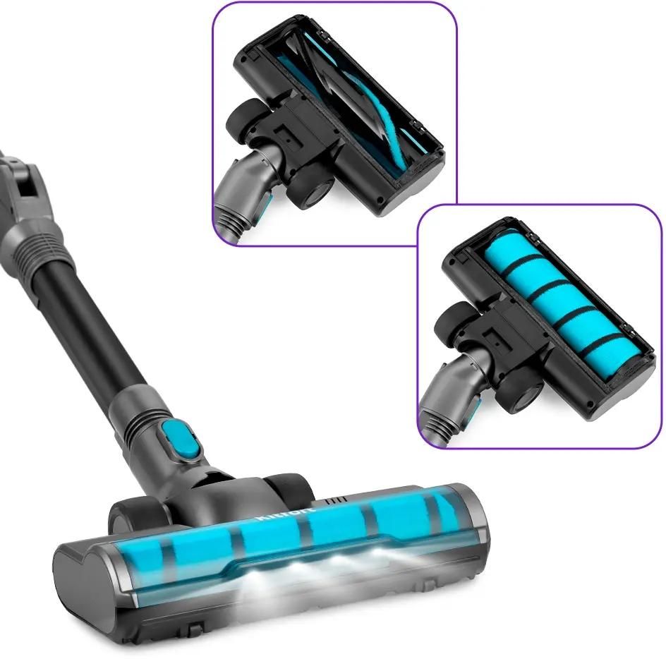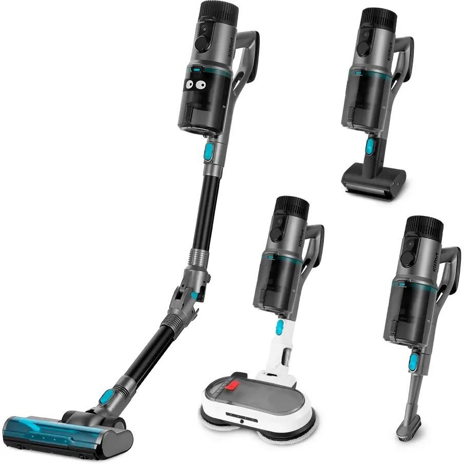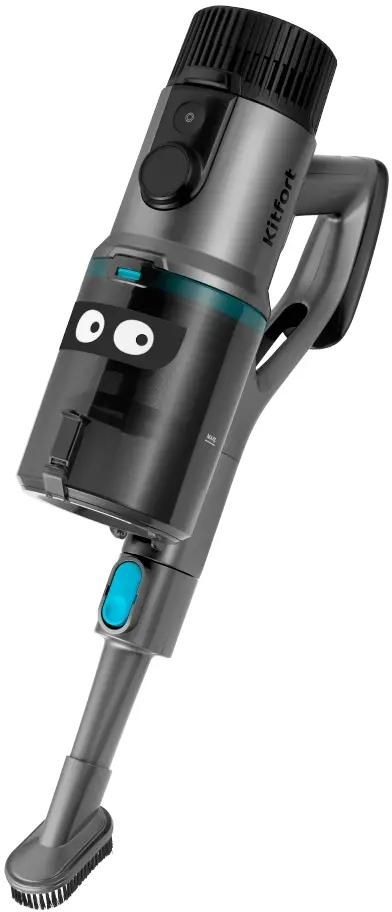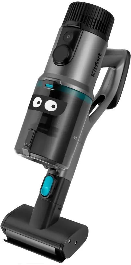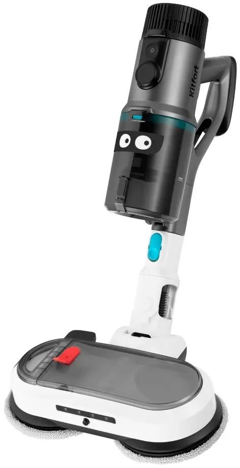 Описание Пылесос беспроводной Kitfort KT-5158 Качественная уборка Беспроводной вертикальный пылесос «3 в 1» КТ-5158 удобен при локальной и генеральной уборке. Он компактен, всегда под рукой и готов к работе. Благодаря работе от аккумулятора пылесос имеет неограниченный радиус действия. 3 в 1: вертикальный, моющий, ручной пылесос Вертикальный пылесос подходит для оперативной уборки, например, рассыпанных крошек или песка от обуви. Ручным пылесосом можно пропылесосить углы и плинтусы, обивку мебели. С моющей щёткой пылесос будет не только всасывать пыль, но и протирать пол. Влажная уборка Моющая щётка оснащена резервуаром для воды на 400 мл и двумя тряпками. На ней расположена педаль, с помощью которой можно регулировать подачу воды из резервуара через диспенсеры. Щётка поможет сделать уборку твёрдых напольных покрытий более качественной. Турбощётка с подсветкой Пылесос комплектуется щёткой для пола с двумя турбощётками, одна поможет справиться с очисткой гладких поверхностей, а другая — с очисткой ковровых покрытий с не очень длинным ворсом. Подсветка позволяет увидеть пыль и мусор в плохо освещённых зонах. На все случаи! К пылесосу прилагаются узкая насадка, щётка с микрофиброй для гладких поверхностей, ворсовая щётка, шланг и мини-щётка с турбощёткой. Насадки и щётки могут крепиться как к удлинительной трубке, так и к моторному блоку с пылесборником. 3 режима мощности «АВТО» — режим автоматической регулировки мощности. Время работы пылесоса — до 33 мин. Режим «МАКС» — режим высокой мощности. Время работы пылесоса — до 10 мин. Режим «ЭКО» — пылесос работает на низкой мощности. Время работы пылесоса — до 55 мин. Циклонный фильтр, удобная чистка Пылесос оборудован современным циклонным фильтром. В пылесборнике установлены поролоновый фильтр, а также фильтр грубой очистки и фильтр тонкой очистки, которые задерживают частички пыли. Фильтры можно вынуть и промыть водой. База для хранения Для удобства хранения вертикального пылесоса в комплекте поставляется база с комплектом крепежа. На базе также можно хранить две насадки. Аккумулятор можно снять для зарядки. Также предусмотрена возможность зарядки устройства через базу. Быстрый сброс мусора Вместительный контейнер пылесборника ёмкостью 600 мл легко снимается и моется. В процессе уборки вы можете воспользоваться быстрой очисткой пылесборника. Для этого необходимо просто открыть крышку пылесборника, держа его над мусорным ведром.