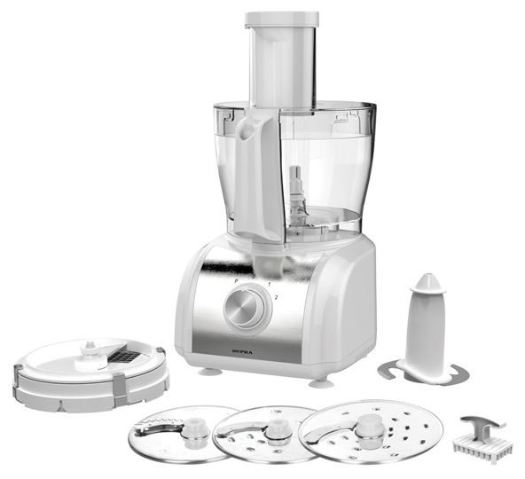 Кухонный комбайн SUPRA FPS-7715 – это стильное современное устройство, которое значительно уменьшит ваш кулинарный труд. С его помощью вы за несколько секунд выполните те действия, на которые раньше у вас уходило до получаса времени. Самой главной особенностью модели является уникальная насадка, предназначенная для нарезки кубиками, которая просто незаменима при приготовлении салатов. Только представьте – на нарезку ингредиентов для винегрета уйдет меньше минуты. Также комплектацией предусмотрены насадки для нарезки, натирания, шинковки и других кулинарных действий.