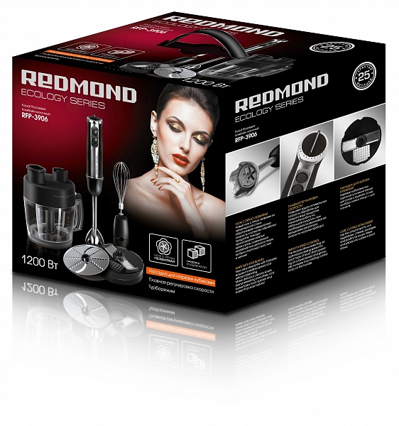 Фирма-производитель оставляет за собой право на внесение изменений в конструкцию, дизайн и комплектацию товара: Кухонный комбайн Redmond RFP-3906. Пожалуйста, сверяйте информацию о товаре с информацией на