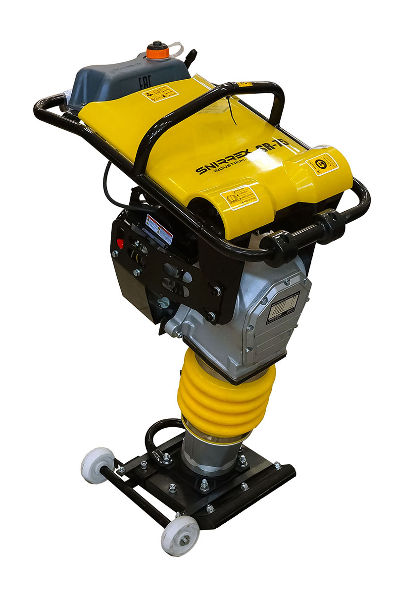 Вибротрамбовка Snirrex SR-75 - вибрационная машина ручного типа, применяемая для уплотнения сыпучих материалов и рыхлых грунтов.