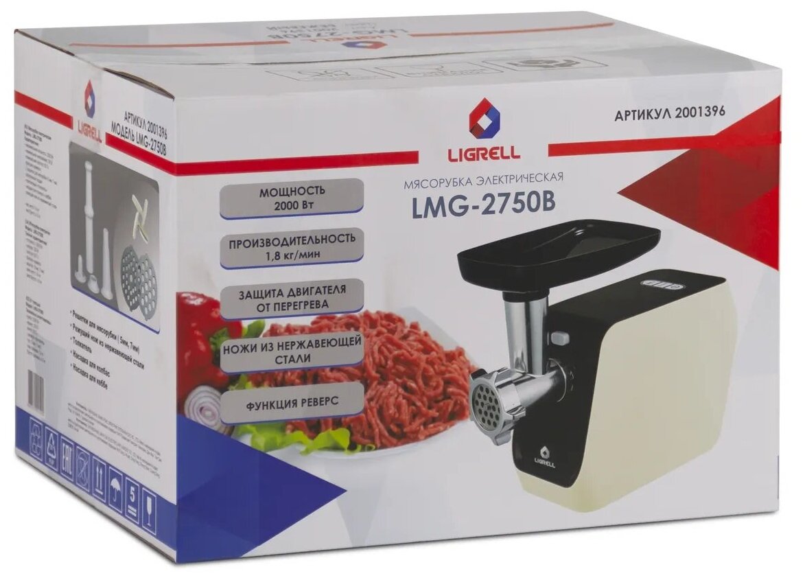 Электрическая мясорубка Ligrell LMG-2750B обладает расширенным набором функций и аксессуаров.