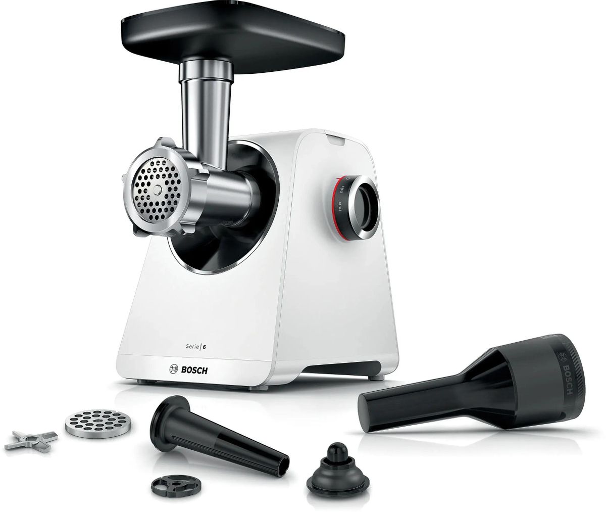 Описание Мясорубка Bosch MFWS 607W Мясорубка Bosch Series 6 MFWS 607W - это современное устройство, которое станет незаменимым помощником на вашей кухне. Бренд Bosch, известный своими надежными и функциональными продуктами, гарантирует высокое качество и долговечность данного устройства. Мясорубка оснащена насадками для приготовления колбас и кеббе, что позволяет расширить возможности приготовления мясных блюд. Корпус мясорубки выполнен из комбинации пластика и металла, что обеспечивает прочность и долговечность устройства. Номинальная мощность мясорубки составляет 500 Вт, а максимальная мощность при блокировке мотора достигает 2100 Вт. Прорезиненные ножки обеспечивают устойчивость мясорубки на любой поверхности, а отсек для сетевого шнура позволяет хранить его аккуратно и безопасно. Мясорубка Bosch Series 6 MFWS 607W имеет компактные размеры (высота - 247 мм, ширина - 200 мм, глубина - 240 мм) и небольшой вес (4 кг), что делает ее удобной для хранения и использования. Bosch Series 6 MFWS607W - это надежный, функциональный и стильный помощник на вашей кухне, который станет незаменимым инструментом для приготовления разнообразных мясных блюд.