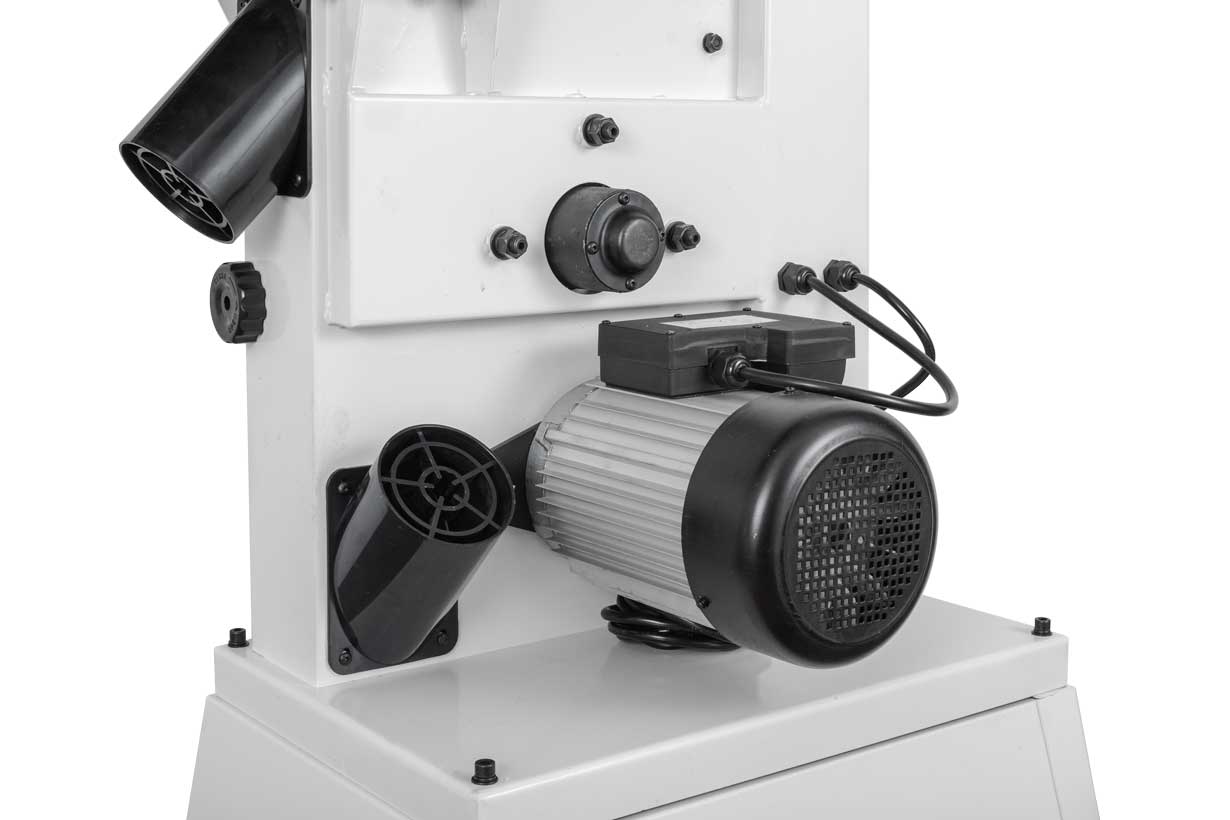 Jet JWBS-14SFX – новая ленточная пила профессионального класса, подходящая для каждодневной работы в условиях небольшой частной мастерской. Ее основные преимущества - жесткая рама, а также увеличенный рабочий стол и высота распиловки (до 330 мм). Эти параметры очень важны для тех, кому нужен универсальный станок, способный взять на себя функции делительного. К подобным работам приспособлен и параллельный упор: направляющий профиль в вертикальном положении позволяет надежно фиксировать высокие заготовки при их роспуске на тонкие пластины, в низком – плоские детали, а также для пиления с наклоном. Упор имеет эксцентриковую фиксацию и перемещается вдоль алюминиевого профиля. Для упрощения настройки предусмотрена миллиметровая шкала и увеличительное стекло с риской на корпусе. Механизм натяжения и центрирования ленты включает в себя две группы трехроликовых направляющих на шарикоподшипниках, стрелочный индикатор уровня натяжения, регулирующие маховики, два смотровых окошка и рычаг быстрого натяжения-ослабления. Чтобы улучшить плавность работы, использованы чугунные шкивы с массивным телом. Система аспирации обеспечивает сбор опилок с двух 100-миллиметровых патрубков: один расположен под рабочей поверхностью, второй в нижней части корпуса. Для освещения рабочей области предусмотрен светодиодный плафон на гибком кронштейне.