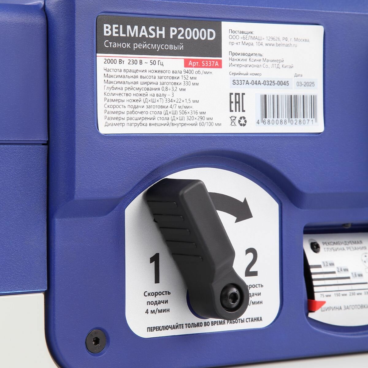 Описание Станок рейсмусовый Белмаш P2000D [S337A] Рейсмусовый станок BELMASH P2000D предназначен для выравнивания толщины деревянных заготовок. В результате вы получите ровные заготовки, которые можете применить в столярном деле, при изготовлении мебели, в строительстве и т.п. Особенности Четыре направляющие стойки повышают жесткость конструкции, минимизируя вибрации и обеспечивая точность обработки Мощный двигатель 2000 Вт справляется с различными породами древесины Трехножевой вал обеспечивает чистую поверхность заготовки Регулируемая глубина строгания 0,8–3,2 мм за проход для точной настройки под задачу Расширяемый рабочий стол с выдвижными роликами размером 335×330 мм поддерживают длинные заготовки Встроенная система отвода стружки с мощной турбиной и фильтр-мешком Подсветка указателя глубины строгания для комфортной работы