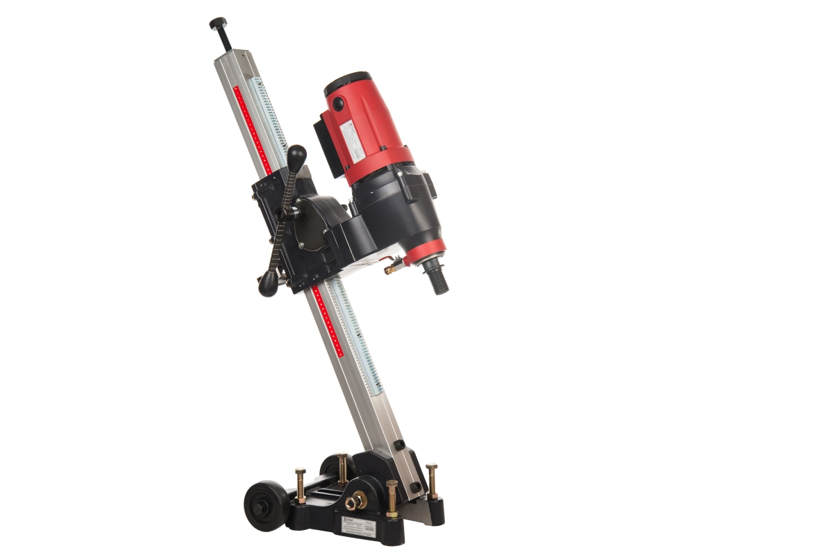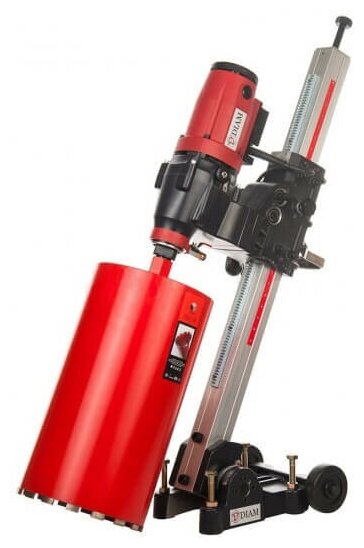 Описание Станок сверлильный Diam CSN-355A [620016] Установка алмазного бурения DIAM CSN-355A - профессиональная, практичная и надежная установка для сверления отверстий диаметром от 30 до 350 мм в бетоне, железобетоне, кирпиче, природном камне. Оснащена двигателем 2,7 кВт (220В), мощность которого достаточна для сверления отверстий на глубину до 2 метров. В комплект поставки входит наклонная бурильная стойка, с возможностью бурения под углом от 30 до 150 градусов, оснащенная с быстросъемным соединением для установки моторного блока. Электромотор оснащен светодиодной индикацией нагрузки, ограничителем пускового тока с плавным пуском, блоком выключения для защиты от перегрузок, PRCD переключателем с защитой от пробоя на корпус, редуктором для плавной подачи и проскальзывающей муфтой для защиты от заклинивания алмазной коронки. Данная установка предназначена для алмазного бурения с подачей воды, эксплуатация в ручном режиме не предусмотрена. Комплект рассчитан на выполнение больших объемов работ, и способен выдержать работу по 16 часов в сутки.