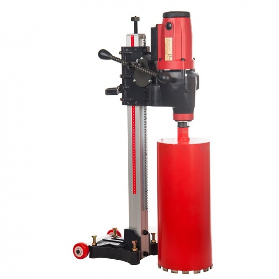 Описание Станок сверлильный Diam CSN-254N [620013] Установка алмазного бурения Diam CSN-254N - профессиональный комплект для сверления алмазными коронками сквозных и глухих отверстий диаметром от 25 до 254 мм, в бетоне, железобетоне, кирпичной кладке, граните и прочих материалах. Оснащается двигателем мощностью 2,5 кВт, светодиодным индикатором нагрузки, электронной системой защиты от перегрева и перегрузки, системой плавного пуска, двухскоростным редуктором для плавной подачи и проскальзывающей муфтой для защиты от заклинивания алмазной коронки. В комплект поставки входит стальная, износостойкая станина. Вал установки универсальный, имеет внутреннею резьбу ½” и наружную 1 ¼”, что позволяет использовать алмазные коронки любых известных производителей. Данная установка алмазного бурения отлично зарекомендовала себя и у профессиональных строителей и у частных небольших строительных бригад. Преимущества Тип стойки - для сверления отверстий под углом 90 градусов; Мощный электродвигатель; Прочная металлическая конструкция; Небольшой вес; Высверливает отверстия до 254 мм.