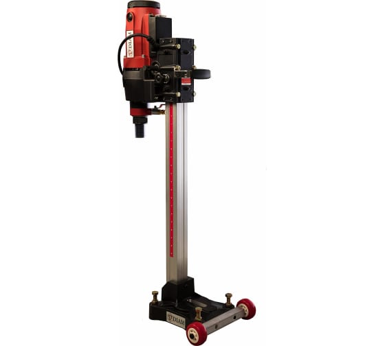 Описание Станок сверлильный Diam CSN-160N [620011] Установка алмазного бурения Diam CSN-160N - оснащается односкоростным двигателем мощностью 2,1 кВт, электронной защитой от перегрева и перегрузки, системой плавного пуска, редуктором для плавной подачи алмазной коронки и проскальзывающей муфтой для защиты от заклинивания алмазной коронки. В комплект поставки входит прочная стальная сверлильная стойка, предназначенная только для прямого сверления и позволяющая сверлить отверстия в железобетонных и кирпичных перекрытиях диаметром от 25 до 160 мм. Вал двигателя алмазной установки имеет хвостовик с наружной резьбой 1 ¼” и внутренней резьбой ½”, что позволяет применять алмазные коронки большинства производителей. Малый вес комплекта алмазной установки и наличие транспортировочных колес на платформе станины, в сочетании с компактными габаритами, позволяет без особых усилий транспортировать оборудование. Особенности Легкая и износостойкая станина Быстроразъёмное соединение между мотором и станиной Каретка с редуктором, для плавной подачи коронки Подающий штурвал переставляется справа и слева Каретка с запорным винтом для безопасной транспортировки машины Вал двигателя с универсальным креплением коронок Плавный пуск электромотора Проскальзывающая муфта, предохраняющая от заклинивания коронки Электронный блок выключения для защиты от перегрева при перегрузках PRCD выключатель с защитой от пробоя на массу