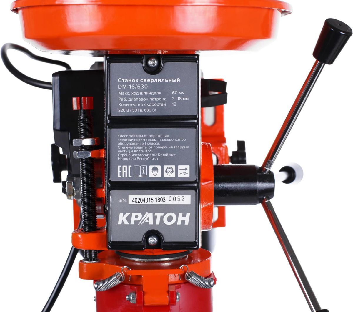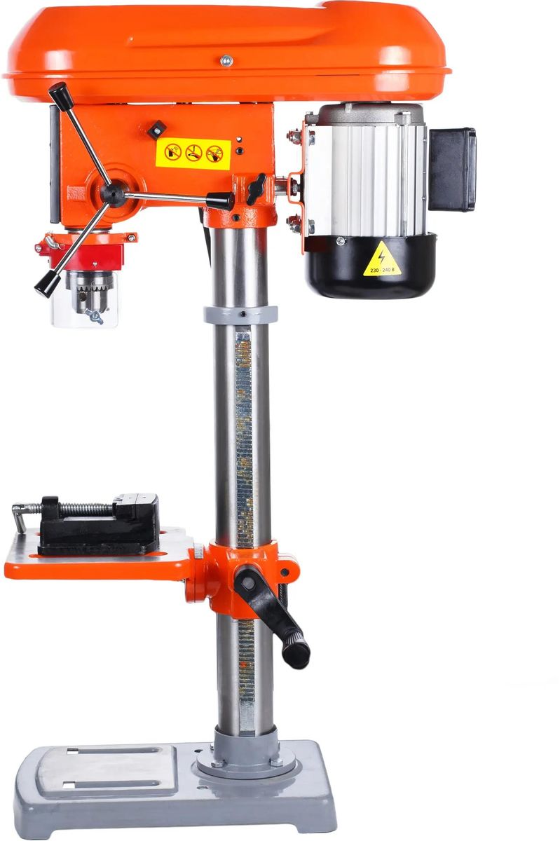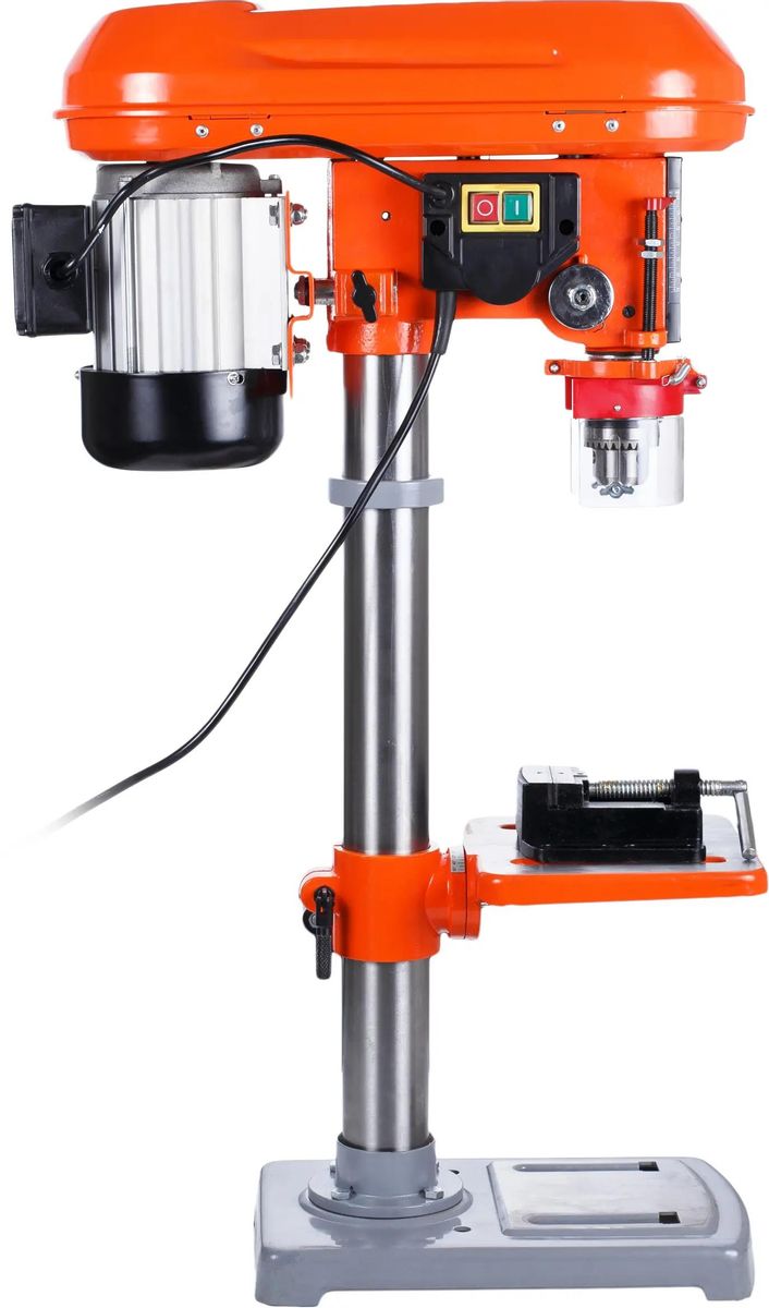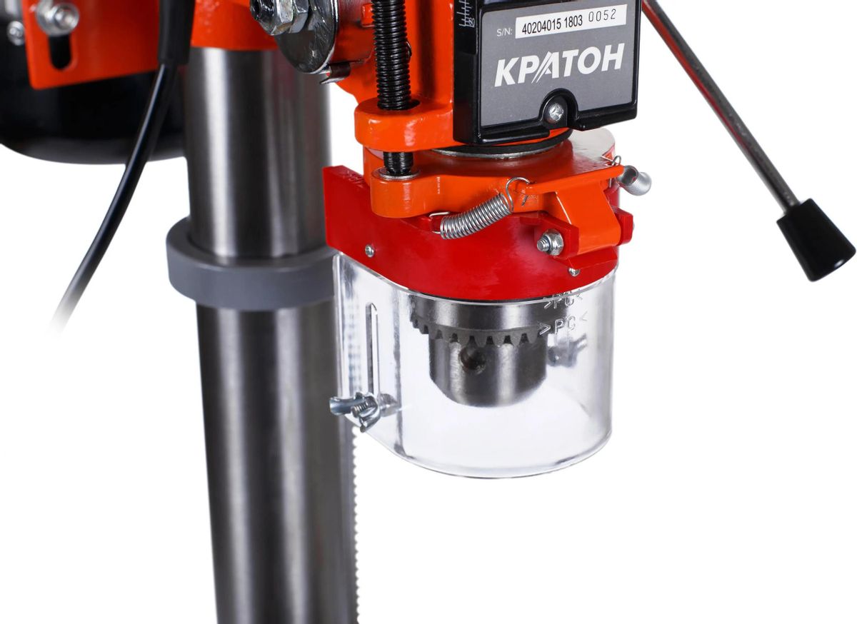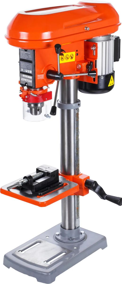 Описание Станок сверлильный КРАТОН Мастер DM-16/630 [4 02 04 015] Сверлильный станок Кратон DM-16/630 относится к типу универсальных вертикально-сверлильных деревообрабатывающих одношпиндельных станков. Предназначен для сверления отверстий в древесине и других различных материалах.  Имеет хорошую устойчивость, что позволяет работать с большим усилием прижима детали. Конструкция обеспечивает высокую эффективность обработки для мастерских. Преимущества сверлильного станка Кратон DM-16/630 Надежный асинхронный электродвигатель. Регулируемый откидной защитный экран для безопасной работы. Рабочий стол способен перемещаться в вертикальном направлении. В комплект входят тиски.