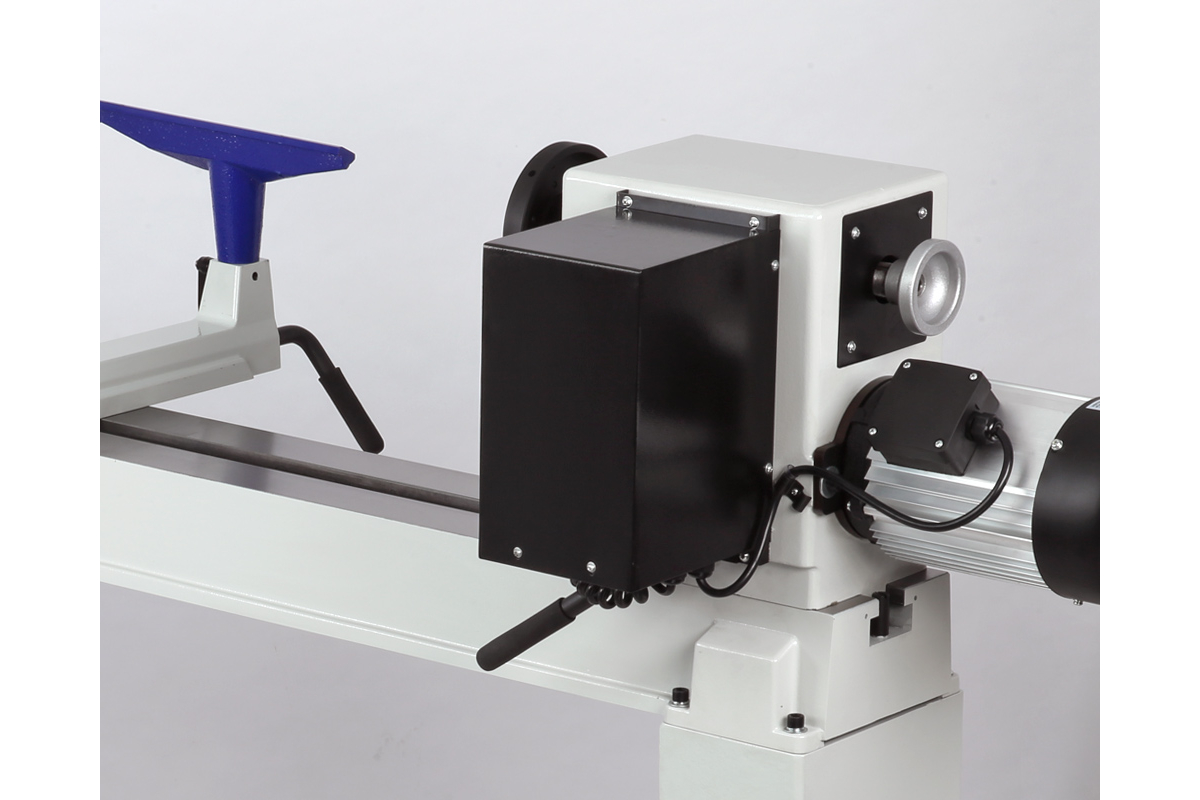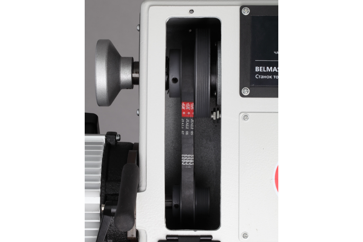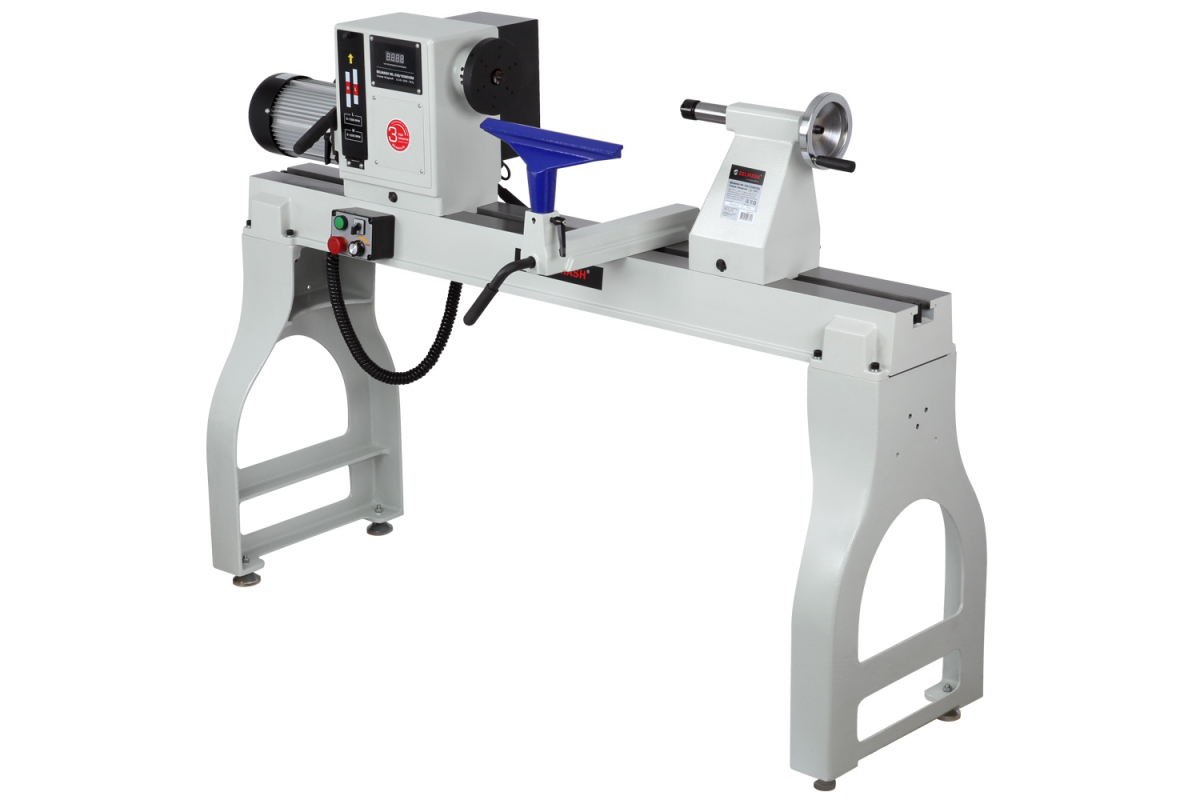 Станок имеет мощный асинхронный двигатель – 2200 Вт. Диапазонов скоростей два: низкий - от 0 до 1200 об./мин., и высокий – от 0 до 3200 об./мин. Скорость регулируется плавно с помощью частотного преобразователя. Отличительная особенность – выносной пульт управления с магнитной фиксацией.