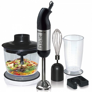 Погружной блендер Polaris PHB 0707A сочетает в себе сразу три функции. Блендер, миксер и измельчитель – практически полноценный кухонный комбайн, но при этом гораздо компактнее. Тем самым, приобретая его, вы можете убить сразу двух зайцев: сэкономить не только деньги, но и место в шкафу. Прибор предназначен для приготовления коктейлей, пюре и смузи из натуральных овощей и фруктов и многого другого. Также эта модель позволяет приготовить суп-пюре непосредственно в кастрюле.