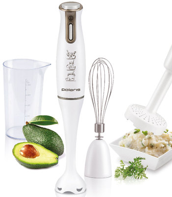 Погружной блендер Polaris PHB 0518 поможет вам в создании кулинарных шедевров, а также в повседневной готовке. Особенностью данной модели является наличие насадки для приготовления пюре. Несколько секунд и воздушное картофельное пюре готово. При помощи чаши-измельчителя можно перерабатывать твердые продукты: мясо, орехи, лук, зелень. Конструкция ножки блендера позволяет перемешивать продукты в чашках с низкими краями, не боясь разбрызгивания ингредиентов. Таким образом, вам не придется пачкать лишнюю посуду.