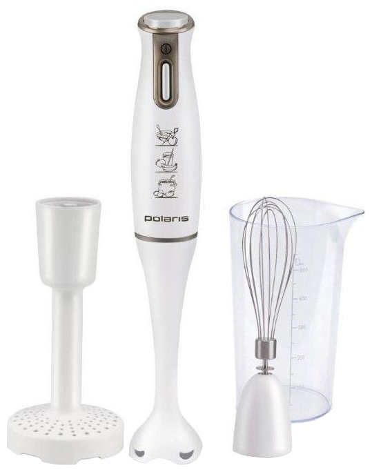 В комплект входит венчик, при помощи которого легко взбить омлет или бисквитное тесто, а также мерный стакан, который предназначен для приготовления коктейлей, и детского пюре. Насадка для картофельного пюре расширяет функциональные возможности блендера Polaris PHB 0417. По вкусу результат не уступает пюре, приготовленному вручную, но в разы превосходит по скорости и требует минимум усилий! Кроме этого, блендер Polaris PHB 0417 за считанные секунды сделает фарш, соусы, коктейли и смузи, поможет взбить яйца и крем, измельчит сырые овощи, зелень, орехи. Блендер Polaris PHB 0417 надежен, универсален и прост в использовании, легко моется и чистится.
