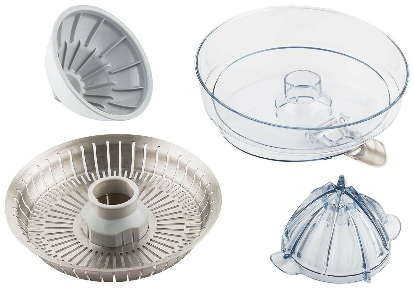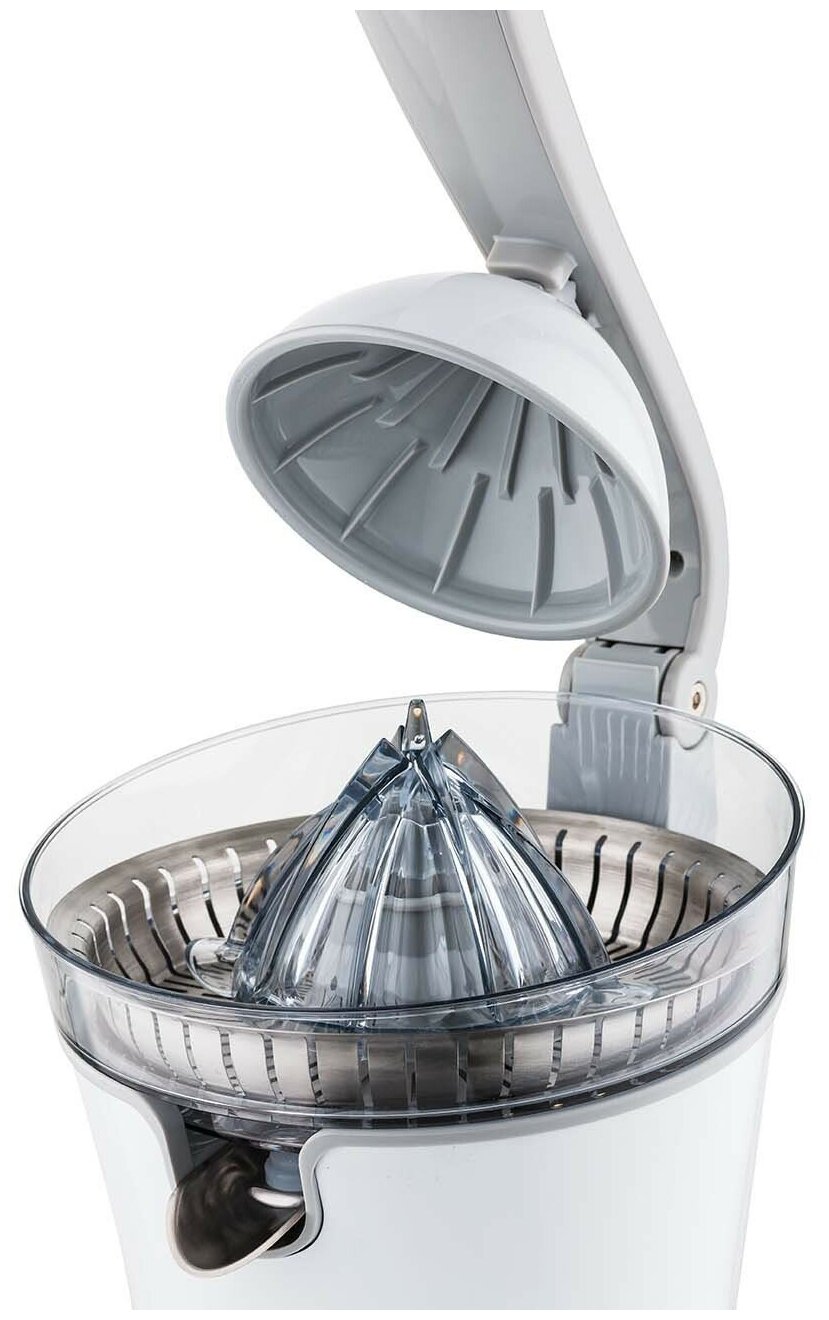 Конусообразная конструкция позволяет отжимать мякоть равномерно, получая большое количество сока