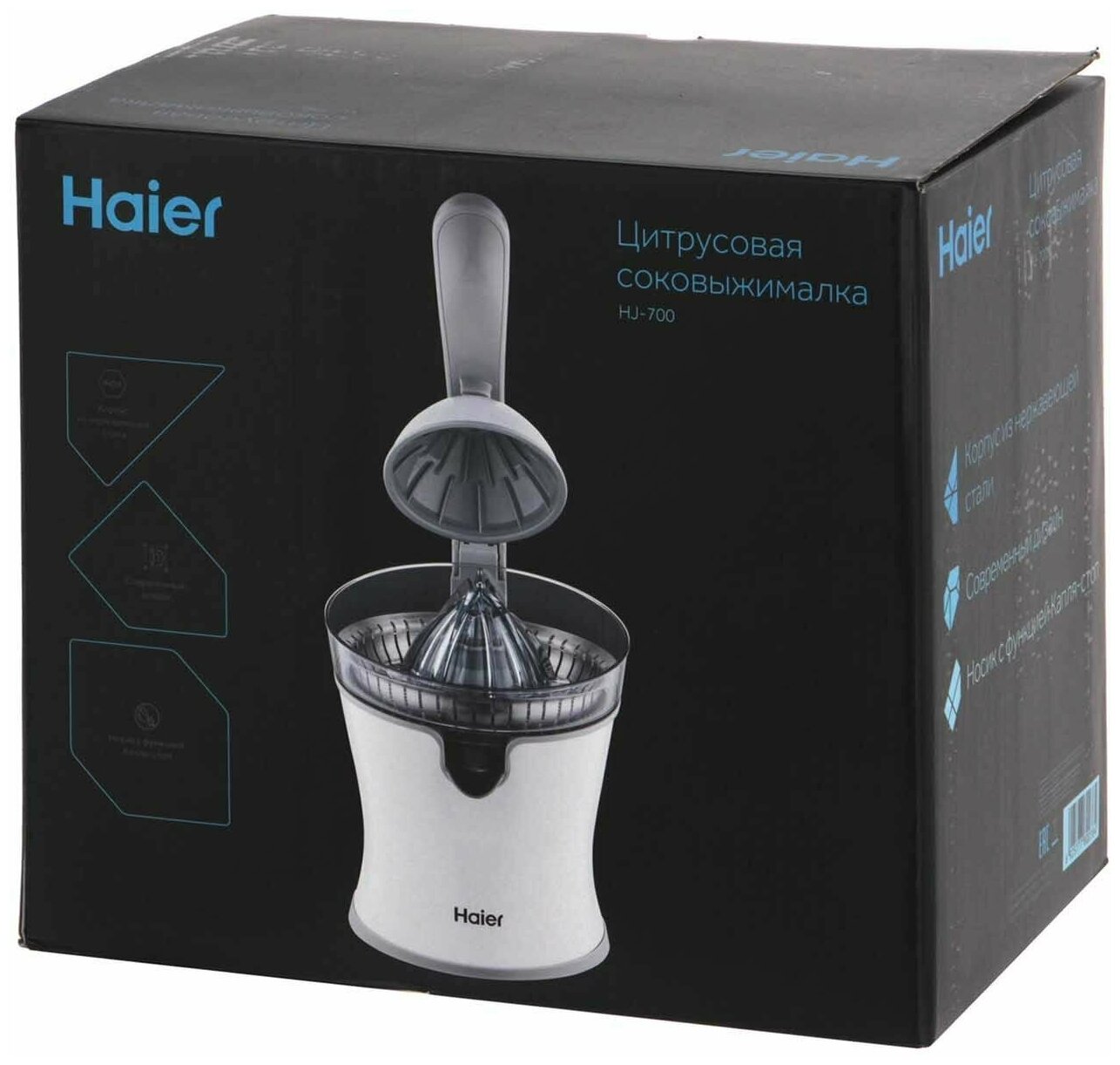 Фирма-производитель оставляет за собой право на внесение изменений в конструкцию, дизайн и комплектацию товара: Соковыжималка Haier HJ-700. Пожалуйста, сверяйте информацию о товаре с информацией на