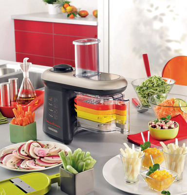 Чтобы приготовить ингредиенты для салата или закусок, супа или второго блюда, нужно всего лишь выбрать и установить подходящую насадку. Они различаются по цвету, так что случайно нарезать что-то кубиками вместо соломки у вас не получится.