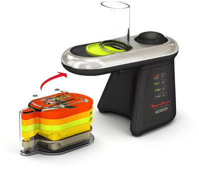 Необычный дизайн сделает новинку от Moulinex настоящим украшением вашей кухни. А благодаря удобной системе хранения кассет Fresh Express Cube & Stick занимает совсем немного места. После использования прибор очень удобно мыть - он состоит всего из нескольких деталей.