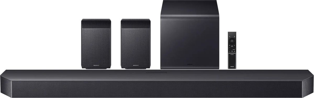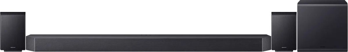 Описание Саундбар Samsung HW-Q990F/RU Samsung HW-Q990F — это флагманская звуковая панель компании 2025 года, которая комплектуется беспроводными сабвуфером и тыловыми колонками. Саундбар оснащен 16-ю каналами для полной реализации возможностей звуковых дорожек в форматах Dolby Atmos. Samsung Q990F имеет интеллектуальное управление с поддержкой нескольких голосовых помощников. Беспроводное воспроизведение контента возможно через Wi-Fi или Bluetooth, включая Apple Airplay 2 и систему Samsung Tap View для соединения с совместимыми телефонами компании. Для ее задействования смартфон нужно просто поднести к саундбару. Как преемник высоко оцененной модели HW-Q990D, саундбар HW-Q990F выводит домашнее аудио на новый уровень. Он оснащен активными сабвуферами с двойной системой, обеспечивающими мощные басы и исключительную точность низких частот. Новый кубический дизайн уменьшает размеры сабвуферов вдвое по сравнению с предыдущей моделью, снижая резонанс и идеально вписываясь в современные интерьеры, благодаря изысканной рельефной отделке. Звуковую панель можно объединить со встроенной акустикой телевизоров Samsung с помощью технологии Q Symphony для еще более точной звуковой сцены. Предусмотрен процессор для преобразования стереозвука или дорожек в формате Pro-Logic для задействования всех каналов Q990F. Samsung HW-Q990F — это новый флагманский саундбар в каталоге Samsung. Модель имеет поддержку Dolby Atmos и производит приятное впечатление. Саундбар имеет 16 каналов звука, что, пожалуй, является рекордным для техники данного класса. Выходная мощность усилителей системы также весьма значительна. Саундбар 2025 года оснащен новыми тыловыми колонками и сабвуфером и новым, значительно улучшенным режимом воспроизведения музыки. Также есть передача видео в стандартах Dolby Vision и HDR10 +, а также возвратный аудиоканал eARC для получения звуковых дорожек Dolby Atmos через HDMI с совместимых телевизоров. У саундбара есть совершенно новая система беспроводной передачи сигнала в формате Dolby Atmos.