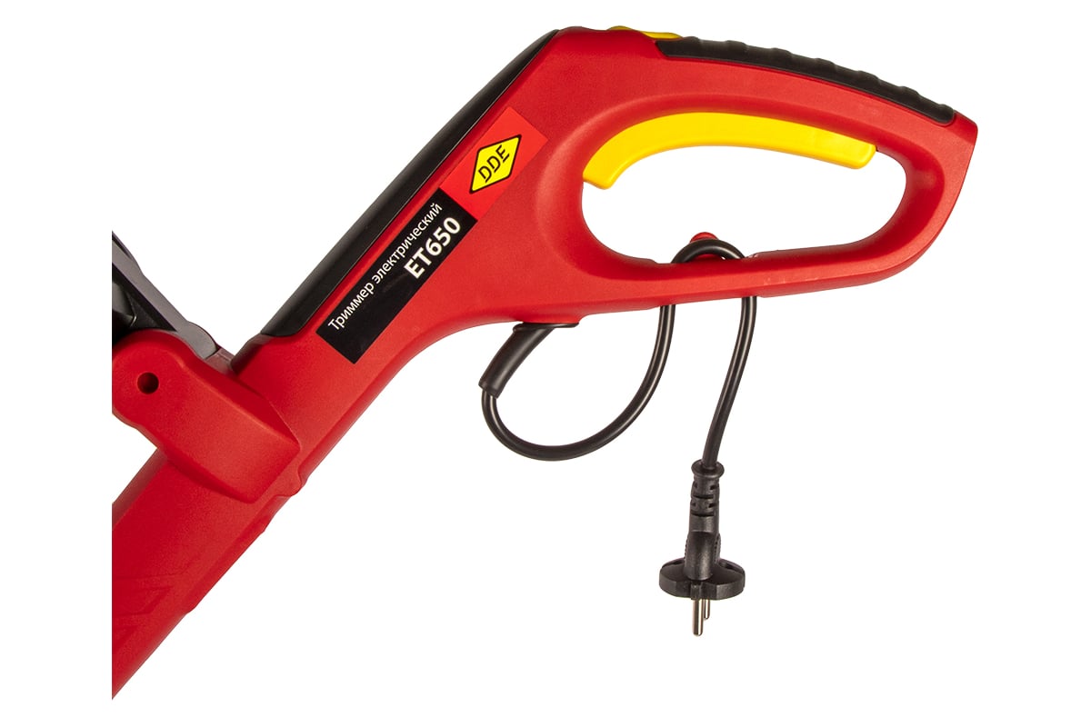 Электрический триммер DDE ET650 используется дачниками и садоводами для кошения травы. Имеет функцию для подрезки вертикальных бортиков травы и кустов. Укомплектован головкой с полуавтоматической подачей лески. Переворот мотора относительно основной рукояти на 90 градусов.