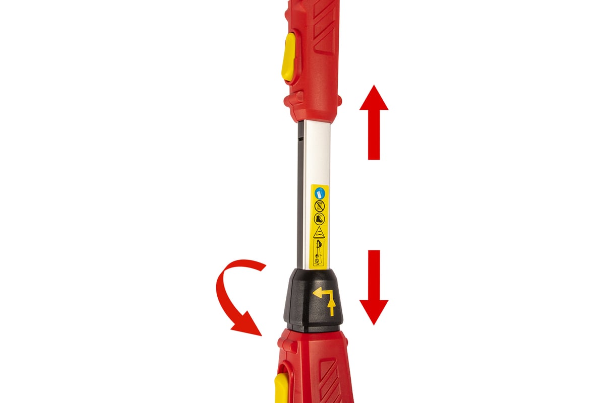 Регулировка наклона мотора к основной рукоятки (функция для кошения под садовой мебелью).