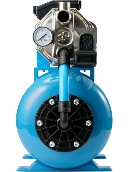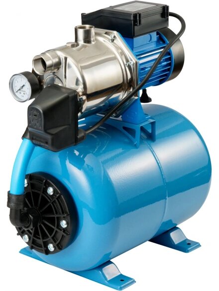 Описание Насос поверхностный Джилекс Джамбо 60/35 Н-24 2.0 [3012] Насосная станция «ДЖАМБО» 60/35 Н-24 создана для автоматизированной подачи чистой воды из разных источников, также может быть использована для повышения давления при использовании в качестве источника магистрального водопровода. Область применения Насосную станцию можно использовать как часть системы автоматического водоснабжения в частном доме. Забор воды может осуществляться из: Преимущества модели «ДЖАМБО» 60/35 Н-24 Наличие заливного отверстия и отверстия для выхода воздуха с резьбововыми заглушками позволяет быстро заполнить водой насосную часть и избежать образование воздушных пробок, что облегчает первоначальный запуск насоса. В процессе залива вода сразу попадает в диффузор, корпус и всасывающую магистраль. Заменена соединительная арматура между насосом и гидроаккумулятором на шланг из сшитого полиэтилена с накидными гайками. Облегчает монтаж и замену гидроаккумулятора. Новая конструкция гидравлической части снижает риск возникновения воздушных пробок при работе. Наличие гидроаккумулятора позволяет защитить насос от частых пусков, тем самым увеличивая его срок службы. Он же позволяет поддерживать давление в системе, что обеспечивает бесперебойное водоснабжение потребителей в тот момент, когда насос отключается. Кроме поддержания давления в системе водоснабжения гидроаккумулятор позволяет предотвратить гидроудар. Встроенная тепловая защита. Функцию защиты от перегрева выполняет термопротектор, находящийся в обмотках статора. Как только температура обмоток повышается - электродвигатель отключается.