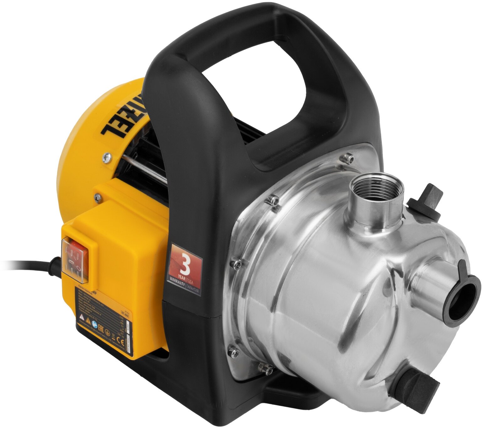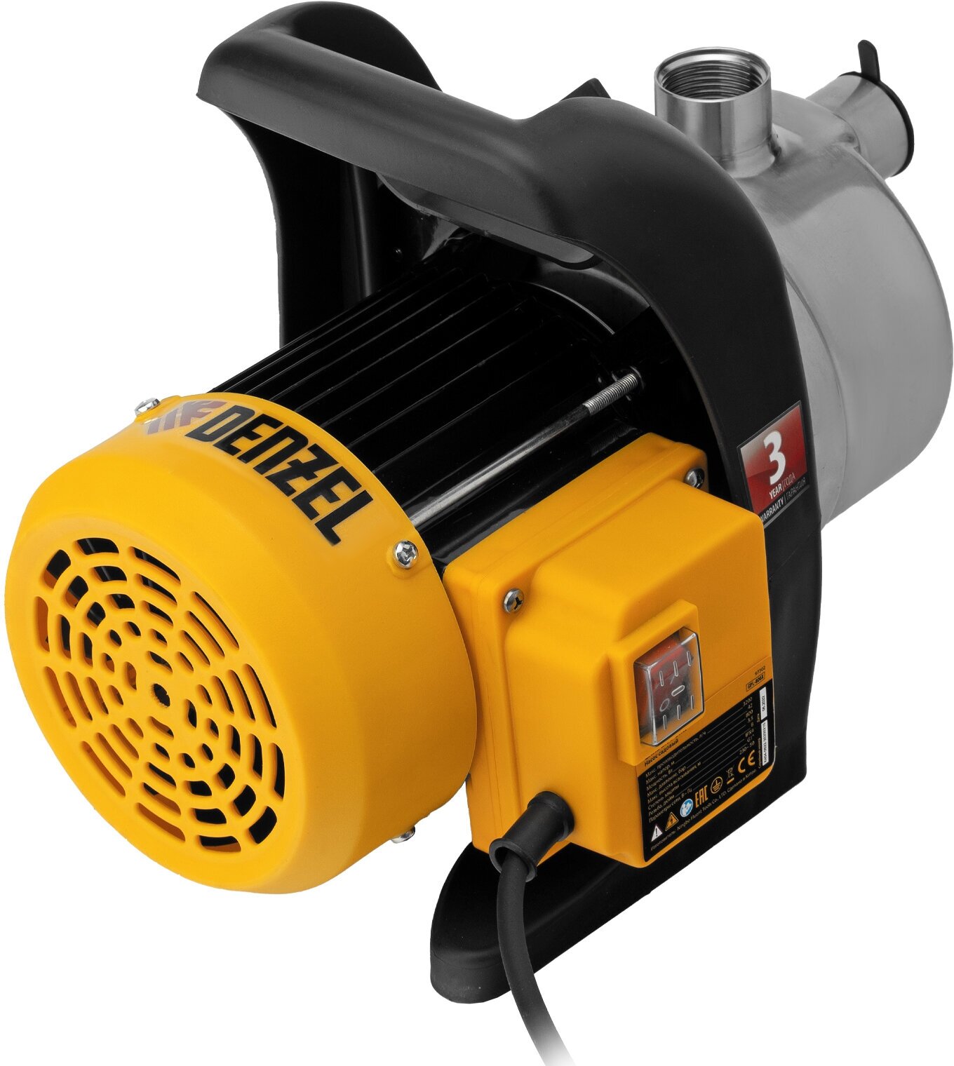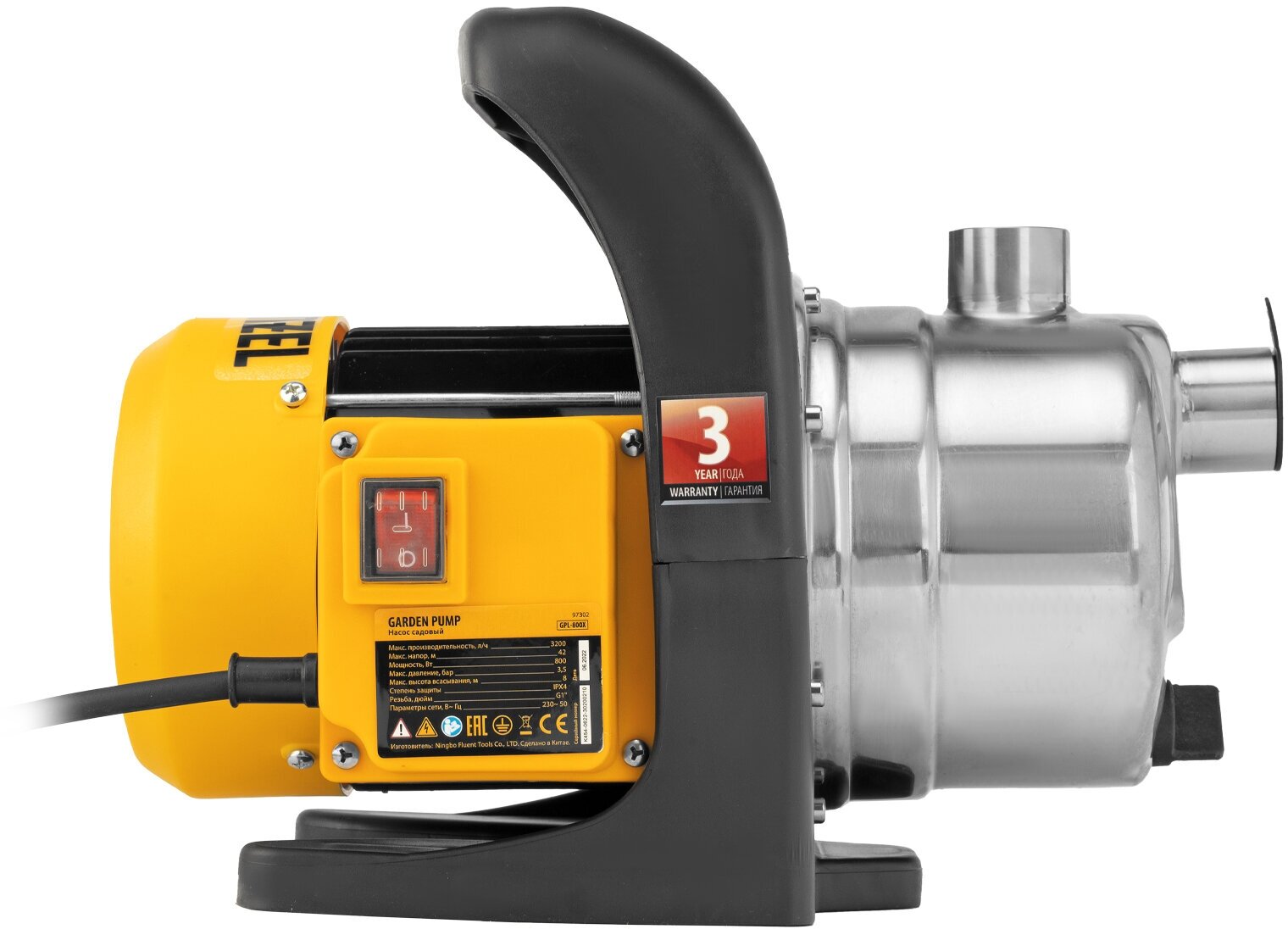 Описание Насос поверхностный Denzel GPL800X [97302] Садовый поверхностный насос Denzel GPL800X мощностью 800 Вт и производительностью 3200 л/ч, с корпусом из «нержавейки», предназначен для забора чистой воды из колодцев, водоемов, различных резервуаров, и подъема ее на высоту до 42 м. Используется для проведения поливочных работ или организации системы водоснабжения в загородном доме. Способен обеспечить водой несколько точек водоразбора. Преимущества Надежность — рабочее колесо из стеклонаполненного пластика не разрушается под воздействием воды и выдерживает интенсивную эксплуатацию. Прочность и коррозионная стойкость — корпус насосной части изготовлен из нержавеющей стали. Степень защиты IPX4 — внутренние элементы надежно изолированы от брызг воды. Комфортное перемещение — насос весит 6,8 кг, в верхней части корпуса имеется удобная ручка. Гарантия 3 года — высокое качество насоса подтверждено производителем.