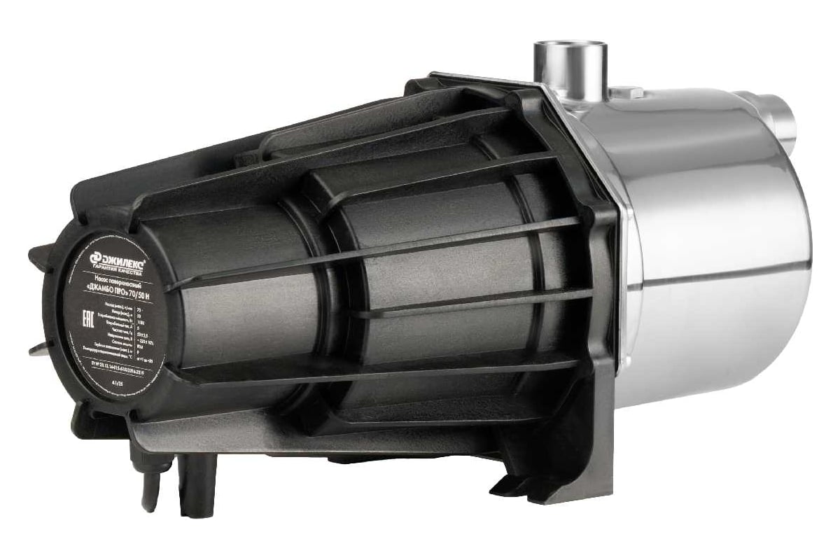 Описание Насос поверхностный Джилекс Джамбо ПРО 70/50 Н [3104] Поверхностный насос «ДЖАМБО ПРО» 70/50 Н разработан для создания автономной системы подачи чистой воды на загородном участке, в частном доме, и для повышения давления в существующих централизованных системах водоснабжения. Область применения «ДЖАМБО ПРО» 70/50 Н рекомендуется использовать в целях: Эта модель может использоваться для забора воды из: Характеристики поверхностного насоса «ДЖАМБО ПРО» 70/50 Н «ДЖАМБО» – название серии; 70 – производительность насоса, т. е. максимально возможный расход воды при свободном изливе в л/мин; 50 – максимальный напор водяного столба в метрах; Н (нержавеющая сталь) – материал изготовления корпуса.