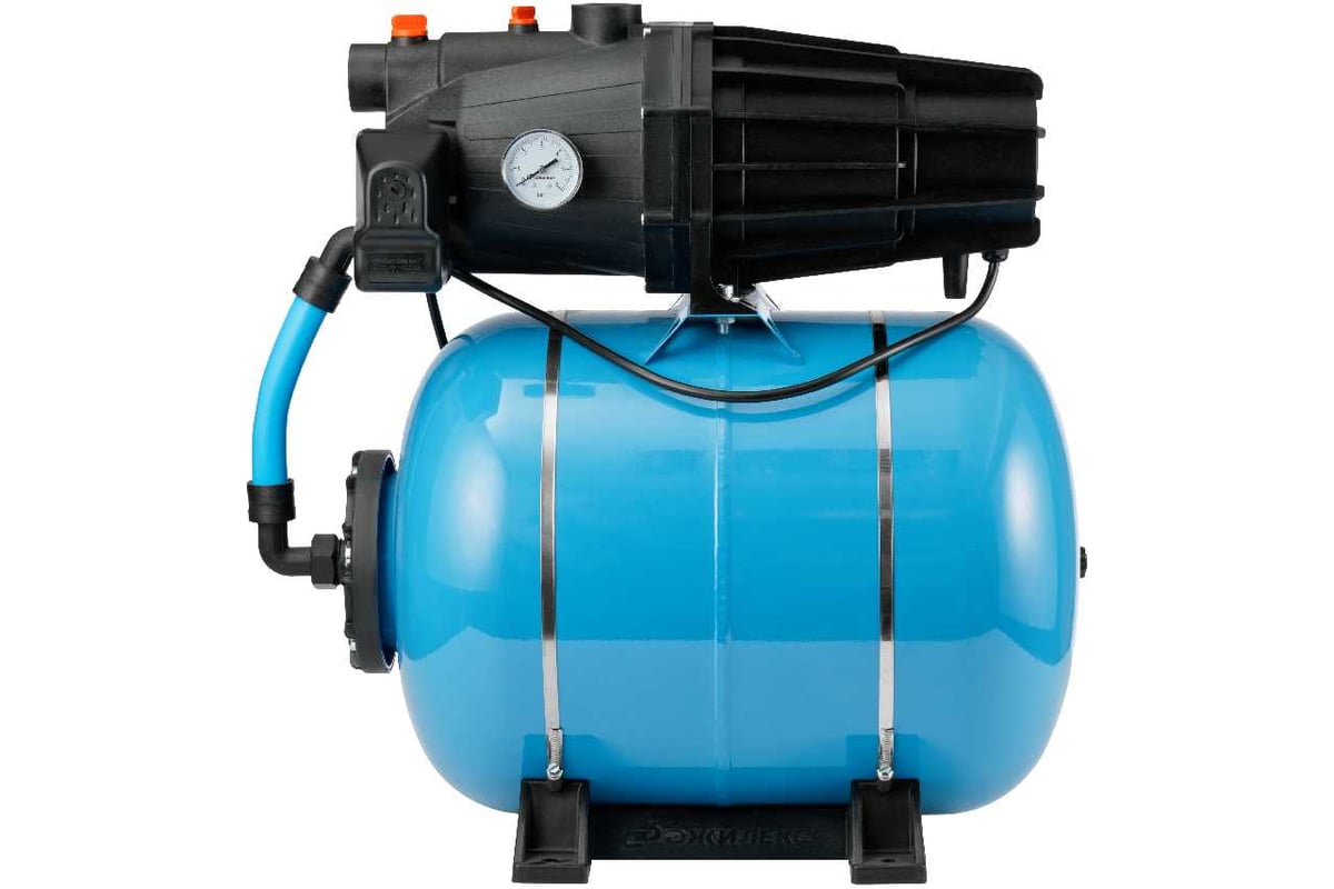 Описание Насосная станция Джилекс Джамбо ПРО 70/50 П-50 [3122] Поверхностный насос-автомат «ДЖАМБО ПРО» с гидроаккумулятором 70/50 П-50, или, как говорят пользователи – с гидробаком, разработан для создания автономной системы подачи чистой воды на загородном участке, в частном доме, и для повышения давления в существующих централизованных системах водоснабжения. Область применения Поверхностный насос-автомат «ДЖАМБО ПРО» 70/50 П-50 используется в системе автоматического водоснабжения для подачи чистой воды из: Характеристики поверхностного насоса-автомата «ДЖАМБО ПРО» с гидроаккумулятором 70/50 П-50 «ДЖАМБО ПРО» – название серии; «70» – производительность насоса, т. е. максимально возможный расход воды при свободном изливе в л/мин; «50» – максимальный напор водяного столба в метрах; «П» (инженерный пластик) – материал изготовления корпуса. Последняя цифра индекса «50» это объем гидроаккумулятора — у этой модификации он составляет 50 л.