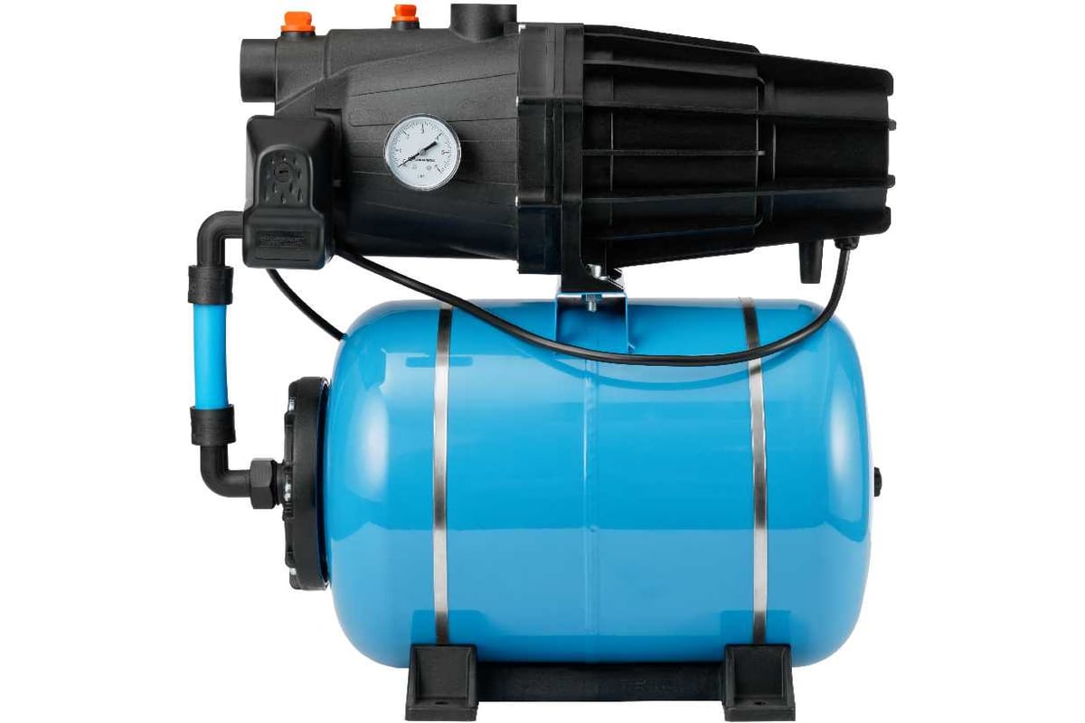 Описание Насосная станция Джилекс Джамбо ПРО 70/50 П-24 [3112] Поверхностный насос-автомат «ДЖАМБО ПРО» с гидроаккумулятором 70/50 П-24, или, как говорят пользователи – с гидробаком, разработан для создания автономной системы подачи чистой воды на загородном участке, в частном доме, и для повышения давления в существующих централизованных системах водоснабжения. Область применения Поверхностный насос-автомат «ДЖАМБО ПРО» 70/50 П-24 используется в системе автоматического водоснабжения для подачи чистой воды из: Характеристики поверхностного насоса-автомата «ДЖАМБО ПРО» с гидроаккумулятором 70/50 П-24 «ДЖАМБО ПРО» – название серии; «70» – производительность насоса, т. е. максимально возможный расход воды при свободном изливе в л/мин; «50» – максимальный напор водяного столба в метрах; «П» (инженерный пластик) – материал изготовления корпуса. Последняя цифра индекса «24» это объем гидроаккумулятора — у этой модификации он составляет 24 л.