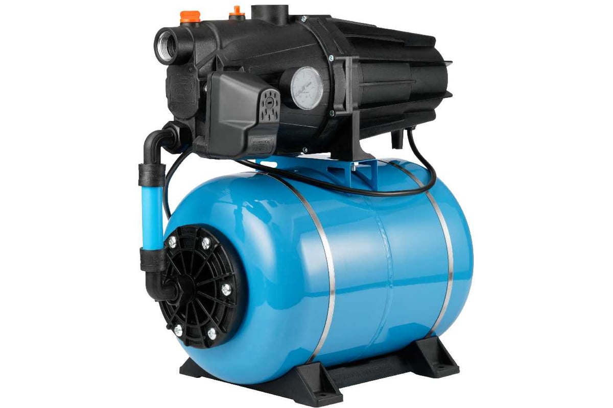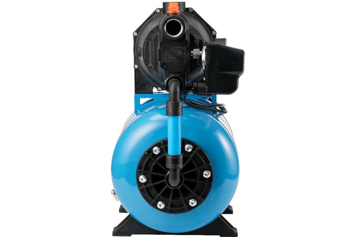 Преимущества поверхностного насоса-автомата «ДЖАМБО ПРО» с гидроаккумулятором 70/50 П-24 Наличие заливного отверстия с резьбовой пробкой позволяет быстро заполнить водой насосную часть и всю всасывающую магистраль перед первым пуском; Наличие гидроаккумулятора позволяет защитить насос от частых пусков, тем самым увеличивая его срок службы. Он же позволяет поддерживать давление в системе, что обеспечивает бесперебойное водоснабжение потребителей в тот момент, когда насос отключается. Кроме поддержания давления в системе водоснабжения гидроаккумулятор позволяет предотвратить гидроудар; Встроенная тепловая защита. Функцию защиты от перегрева выполняет термопротектор, находящийся в обмотках статора. Как только температура обмоток повышается – электродвигатель отключается; Укомплектованы всем необходимым и готовы к работе; Позволяют поднять воду с глубины до 8 метров; Легкость установки и эксплуатации; Гарантия 3 года.