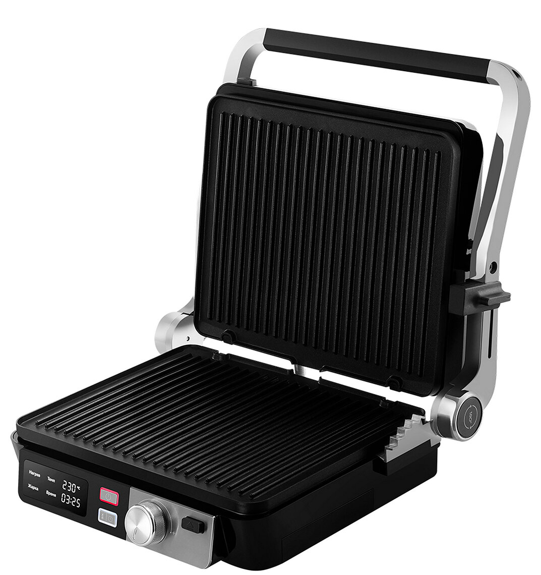 Описание Гриль BQ GR3009 Электрогриль BQ GR3009 – идеальный выбор для приготовления вкусных и здоровых блюд прямо у вас дома. Этот электрогриль с мощностью 2000 Вт идеально подходит для жарки, гриля и выпечки благодаря уникальному дизайну 3в1. Электрогриль оснащен антипригарным покрытием Non-Stick PRO, что делает его использование и очистку легкими и удобными. Съемные панели со встроенными нагревательными элементами обеспечивают более равномерное распределение тепла и быстрый нагрев, а также значительно облегчают чистку после готовки. Панели моются как под водой, так и в посудомоечной машине. Аппарат снабжен электронной панелью управления с дисплеем. Для каждой панели можно установить свою температуру в диапазоне от 90 до 230°C. Таймер от 1 до 60 минут позволит вам заниматься другими делами пока блюда готовятся. Регулировка высоты верхней панели позволяет адаптировать гриль под разные размеры кусков мяса и других продуктов, обеспечивая равномерное прожаривание. Устройство можно использовать в качестве закрытого контактного гриля, гриля-барбекю, а также духовки, запекая продукты в форме из фольги или противня (не входят в базовую комплектацию прибора). Для вашего комфорта и безопасности электрогриль снабжен съемным лотком для жира, который упрощает уборку и предотвращает разбрызгивание жира и масла. Защита от перегрева обеспечивает долгий срок службы устройства и безопасность во время эксплуатации. Прорезиненные ножки обеспечивают устойчивость прибора на рабочей поверхности, исключая случайные сдвиги. Возможность раскрытия на 180 градусов расширяет ваши возможности кулинарных экспериментов, позволяя готовить на двух панелях гриля одновременно. Электрогриль BQ GR3009 станет незаменимым помощником на вашей кухне, сочетая в себе функциональность, удобство и безопасность.