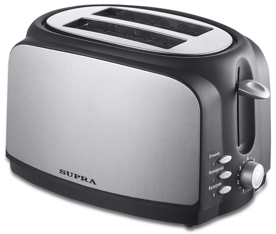 Хлеб в тостере Supra TTS-217 оснащен двумя отсеками для ломтиков хлеба.Поджаривается он либо очень быстро либо просто быстро, в зависимости от такого, какую из семи позиций таймера вы выбрали.