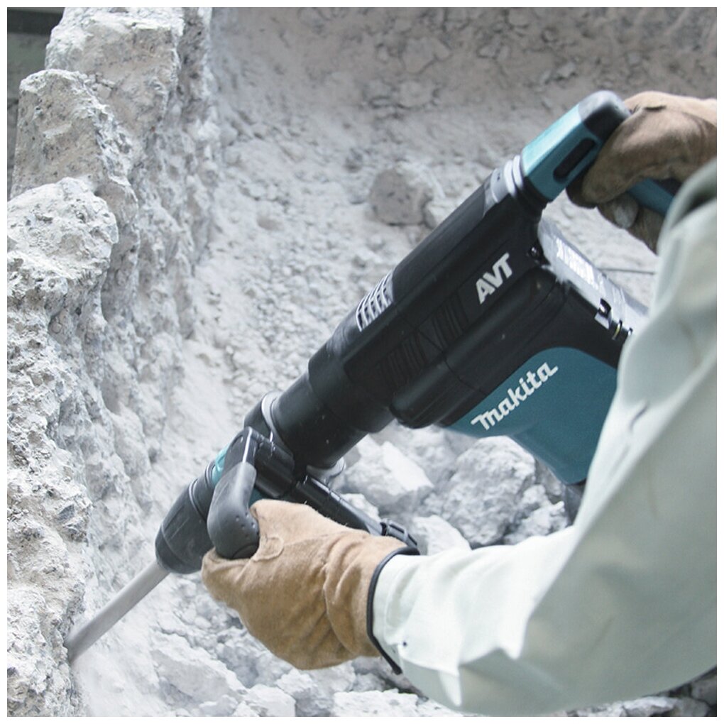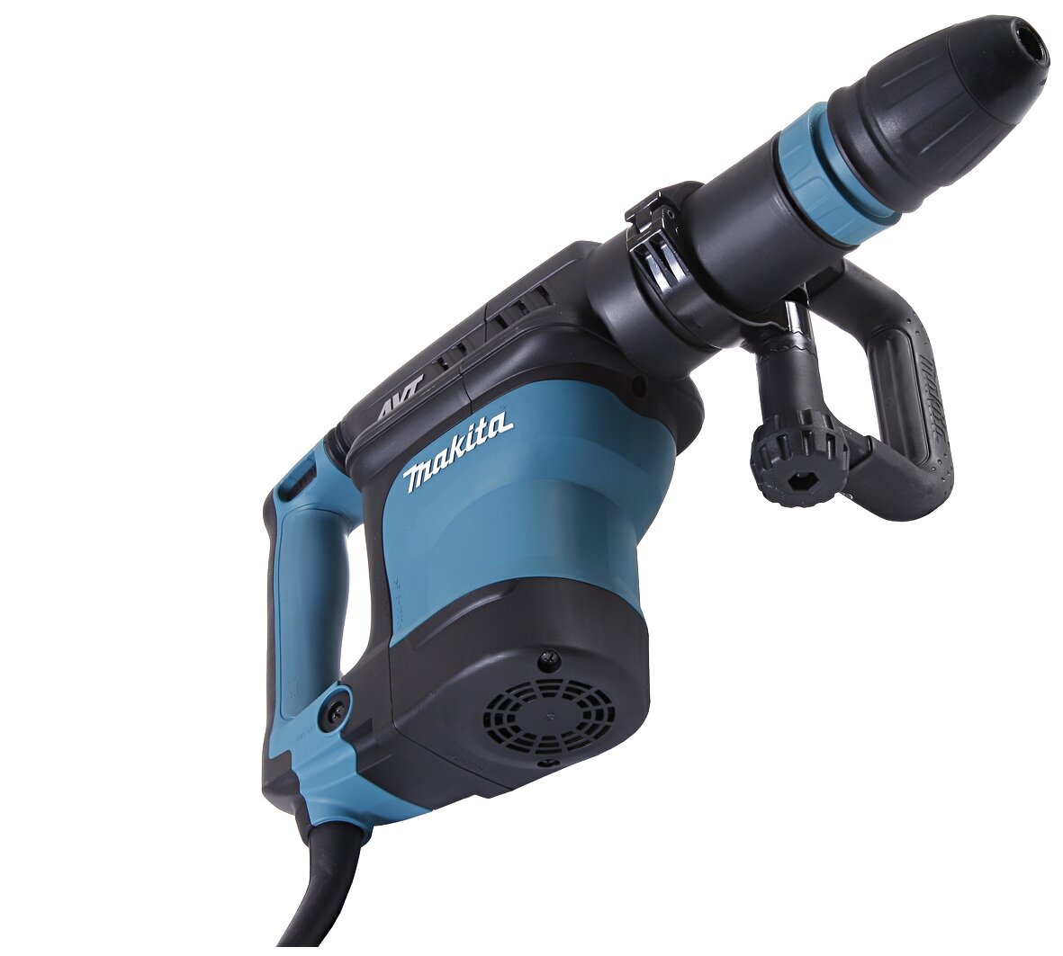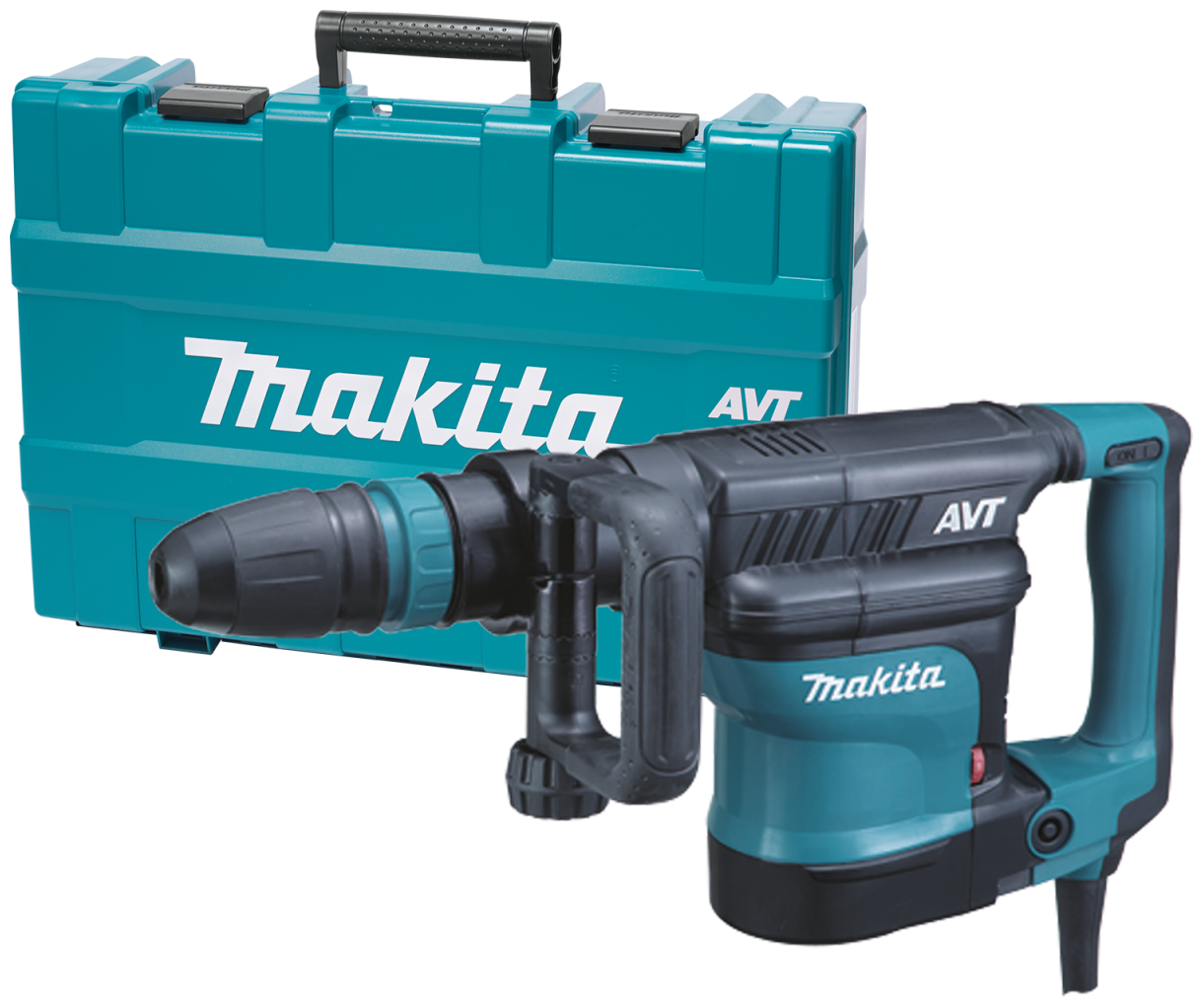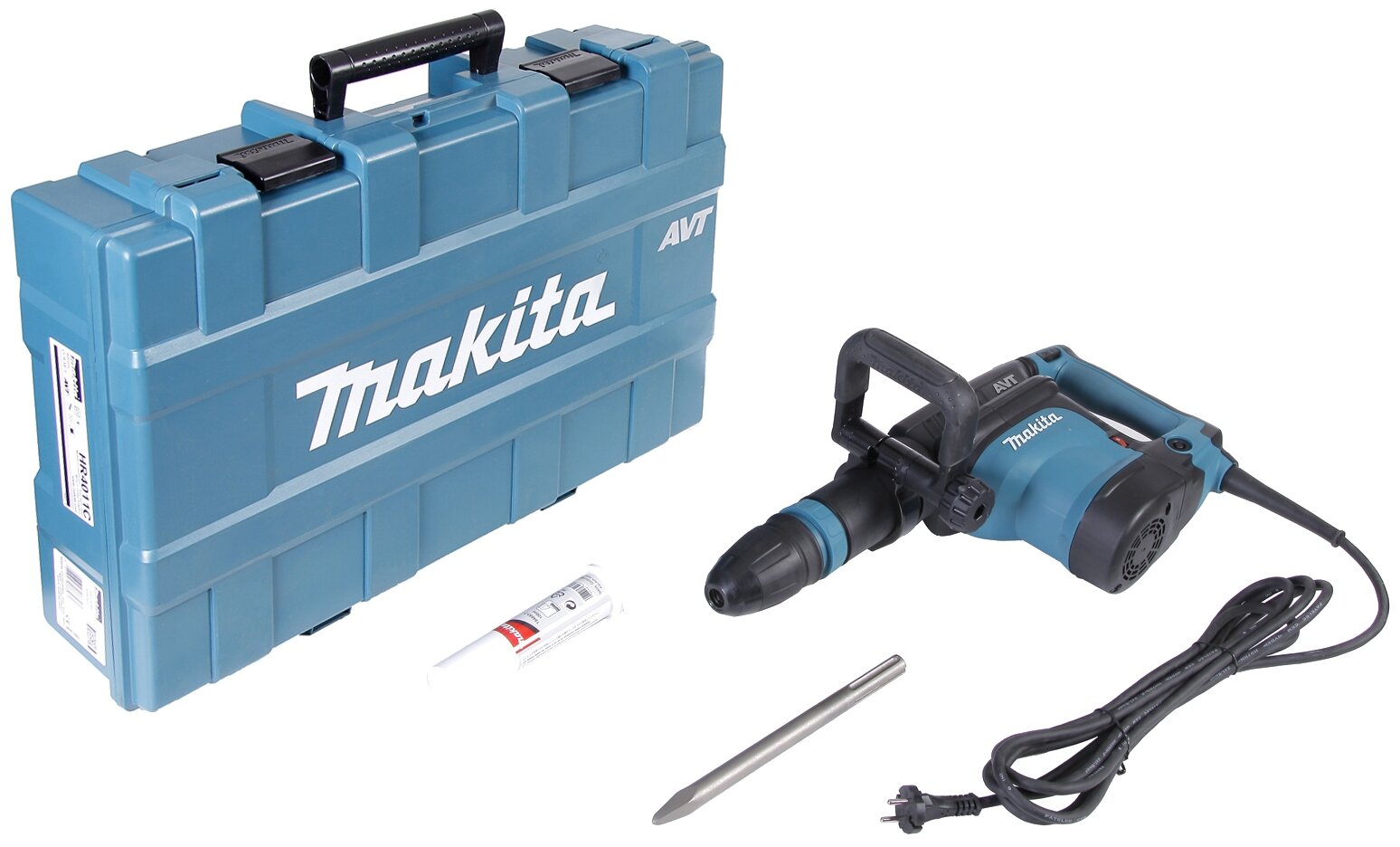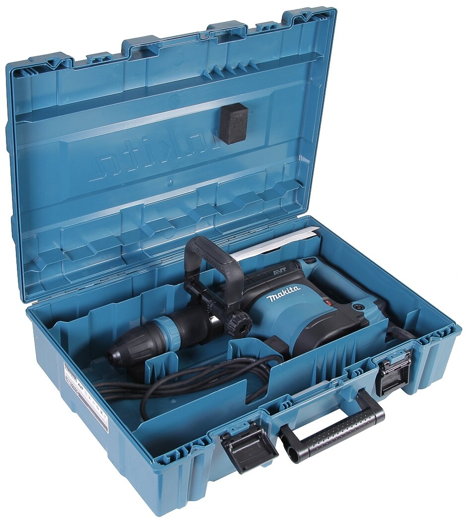 Описание Отбойный молоток Makita HM1111C Отбойный молоток Makita HM1111C используется для прокладывания штроб, демонтирования старых плит, сбивания штукатурки и цементных наплывов и выполнения прочих подобных работ, связанных с долблением. Число ударов достигает 2650 в минуту, при этом сила удара составляет 11.2 Дж. Изделие имеет световой индикатор, который предупреждает о необходимости замены угольных щёток. Число оборотов регулируется электронно. Данная модель поставляется в чемодане, что решает вопрос хранения и транспортировки. Преимущества Makita HM1111C Эффективная работа; Прекрасно подходит для длительной интенсивной работы; Плавный пуск - для постепенного наращивания оборотов; Электронная регулировка оборотов; Индикация состояния угольных щёток (при их неполном износе загорается предупреждающий индикатор, при критическом - щётки отключаются автоматически); Антивибрационная технология AVT (снижение вибрации почти на 70%); Индикатор неисправности кабеля и выключателя; Длина кабеля составляет 5 м, что обеспечивает большой радиус действий Makita использует две методики измерения энергии удара: собственную (17.2 Дж) и EPTA (11.2 Дж).