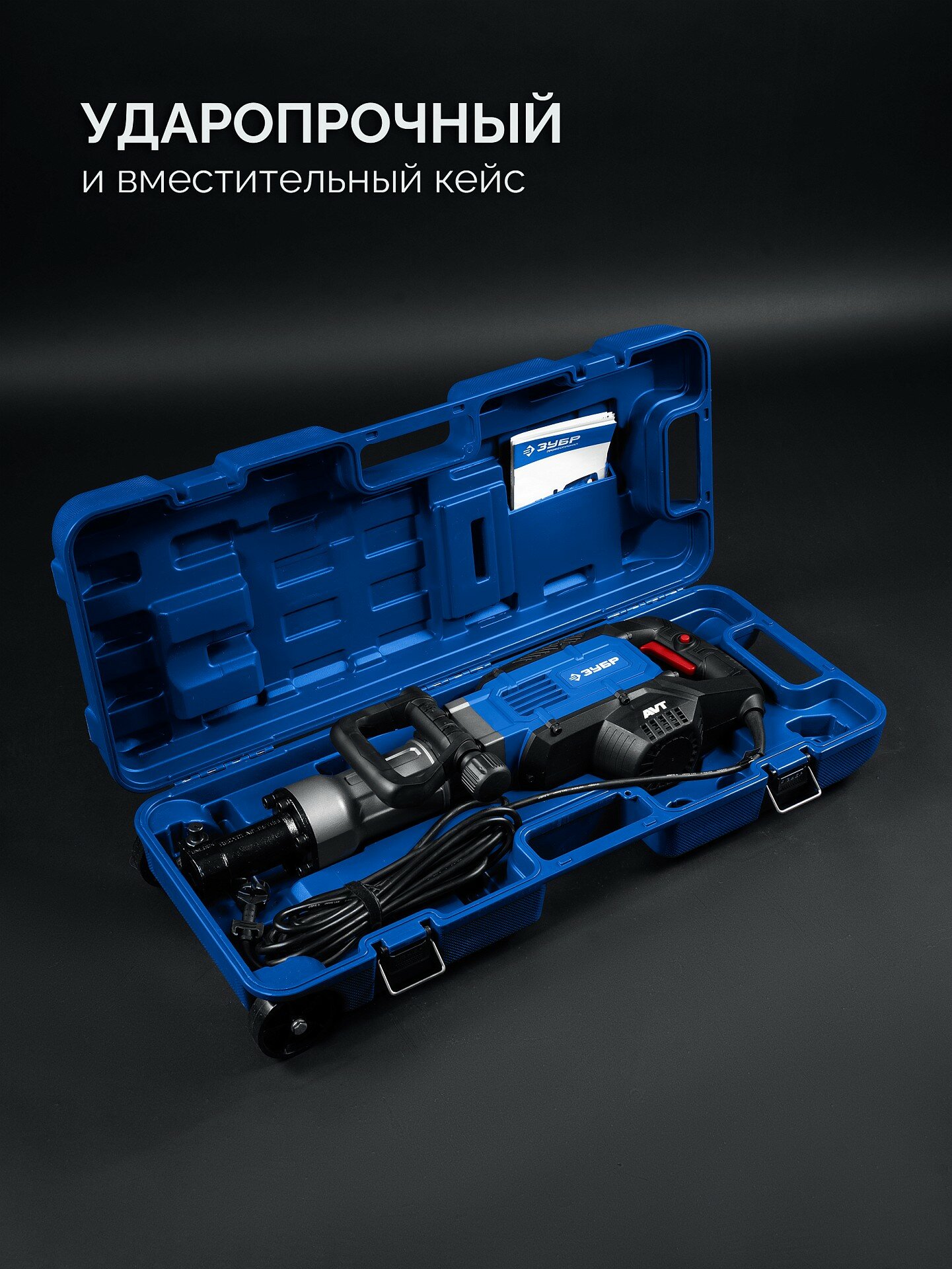Описание Отбойный молоток Зубр Профессионал ЗМ-45-1700 ВК Мощный инструмент для ударного разрушения различных конструкций. Металлический корпус из магниевого сплава, значительная энергия удара 50 Дж, активная антивибрационная система, надёжный патрон HEX 30 делают отбойный молоток незаменимым помощником в Вашей работе. Применение Для разрушения конструкций из бетона, железобетона, кирпича и камня, дробления асфальтовых, бетонных и плиточных покрытий, разрыхления твердого, скального, промерзшего грунта, а также для уплотнения и трамбовки грунта, раскалывания льда, дров, забивания цилиндрических стержней и других строительных работ Преимущества Надёжное и мощное изделия для выполнения необходимых работ Отбойный молоток с большой силой удара при относительно небольшом весе. Обладает мощностью, достаточной для разрушения практически любых конструкций Активная антивибрационная система позволяет снизить негативное влияние на оператора и обеспечить большую продолжительность работы Корпус из магниевого сплава позволяет облегчить конструкцию без потери прочности Сила удара генерируется механизмом без давления на инструмент, т.е. не требует усилий пользователя Энергия удара 50 Дж - достаточно для разрушения бетона, камня или кирпича Надежная конструкция, а также качественные материалы способствуют длительному сроку службы Защита двигателя от строительной пыли Патрон НЕХ 30 для установки широкого спектра профессионального расходного инструмента и быстрой замены в процессе работы Регулируемая на 360° дополнительная D-образная рукоятка обеспечивает удобный и надежный хват в любом положении изделия Муфта отключения удара на холостом хожу продлевает срок службы и увеличивает ресурс изделия на 50% Провод длиной 6 метров для удобства работы Удобный кейс в комплекте для хранения и транспортирования изделия и сменного инструмента