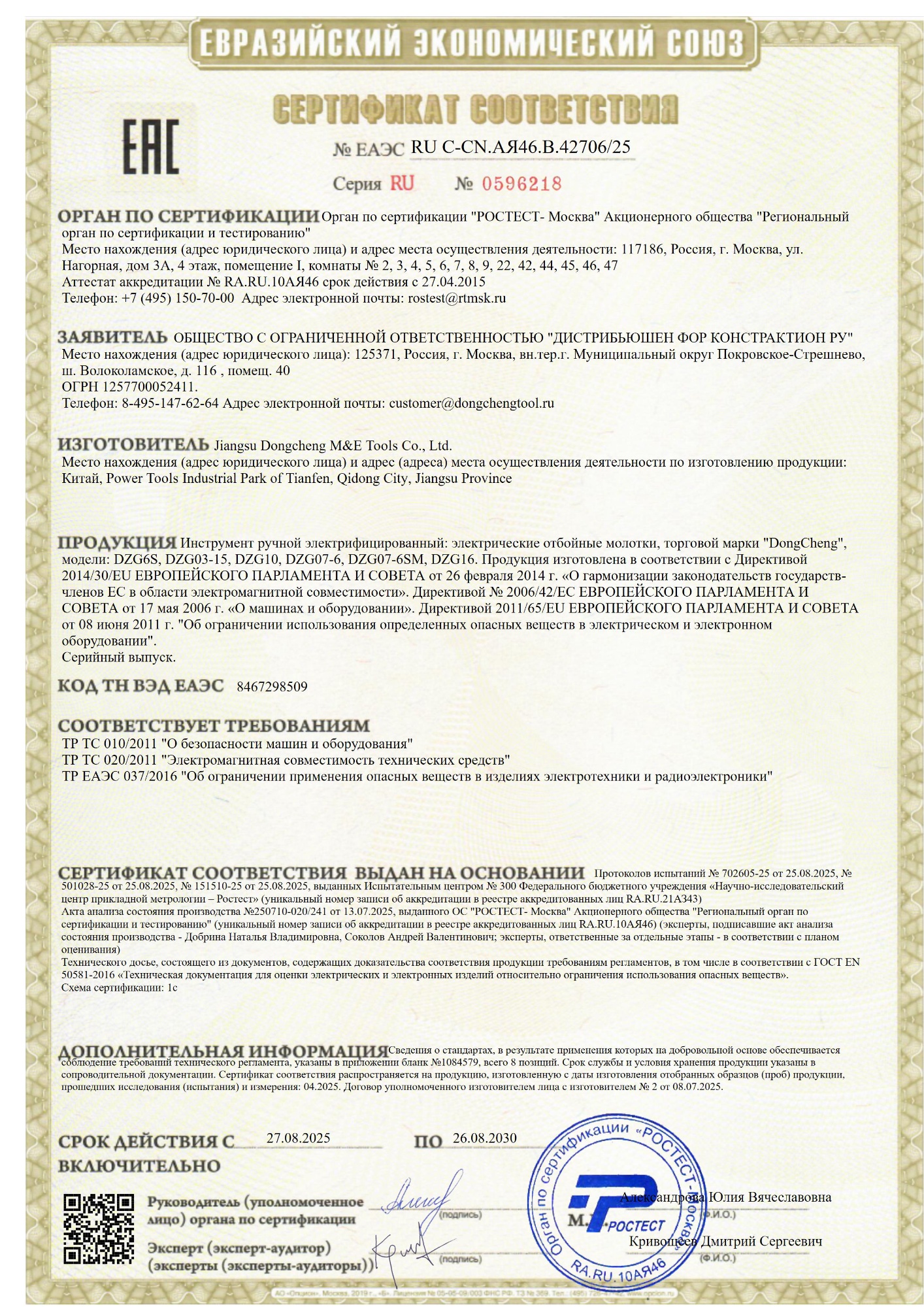 Описание Отбойный молоток DongCheng DZG03-15 Отбойный молоток DZG03-15 - мощный и эффективный инструмент, предназначенный для выполнения тяжелых демонтажных работ. Идеально подходит для разрушения бетонных конструкций, асфальта и кирпичной кладки. Данный профессиональный инструмент сочетает в себе высокую производительность, надежность и продуманную эргономику для эффективной и продолжительной работы. В комплектацию входят масленка, гаечный ключ, шестигранный ключ, угольные щетки, железный кейс. Срок гарантии - 3 года на инструмент и 1 года на аккумуляторы и зарядные устройства. Особенности Мощный двигатель 1240 Вт Обеспечивает стабильную работу под высокой и продолжительной нагрузкой, позволяя быстро справляться с поставленными задачами. Сила удара 41,8 Дж Высокая энергия удара, гарантирует эффективное разрушение даже самых прочных материалов. Каждый удар наносит максимальное воздействие, что ускоряет процесс демонтажа. Сбалансированный вес Конструкция с оптимальным распределением массы снижает мышечное напряжение оператора и обеспечивает лучший контроль над инструментов.