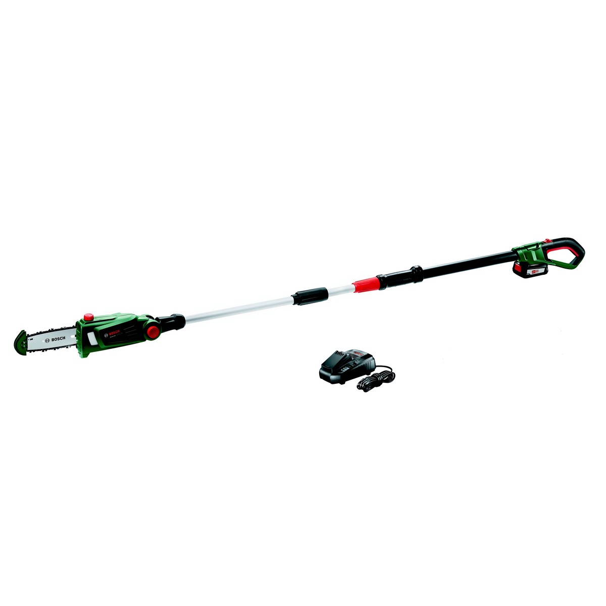 Описание Высоторез Bosch UniversalChainPole 18 [06008B3100] Цепная пила-высоторез Bosch UniversalChainPole 06008B3100 с телескопической ручкой позволяет обрабатывать высокие растения без использования стремянки. Особенности Непрерывная резка, безопасная для деревьев Для эргономичной и сбалансированной работы с минимальным напряжением рук и спины Один аккумулятор для всех садовых и DIY инструментов от Bosch благодаря системе литий-ионных аккумуляторов 18 В Power for ALL Syneon Chip — интеллектуальное управление энергией для любого проекта Протектор кончика и зубчатый упор для оптимального контроля подрезки Индикатор уровня масла и автоматическая смазка цепи позволят избежать обсыхания инструмента