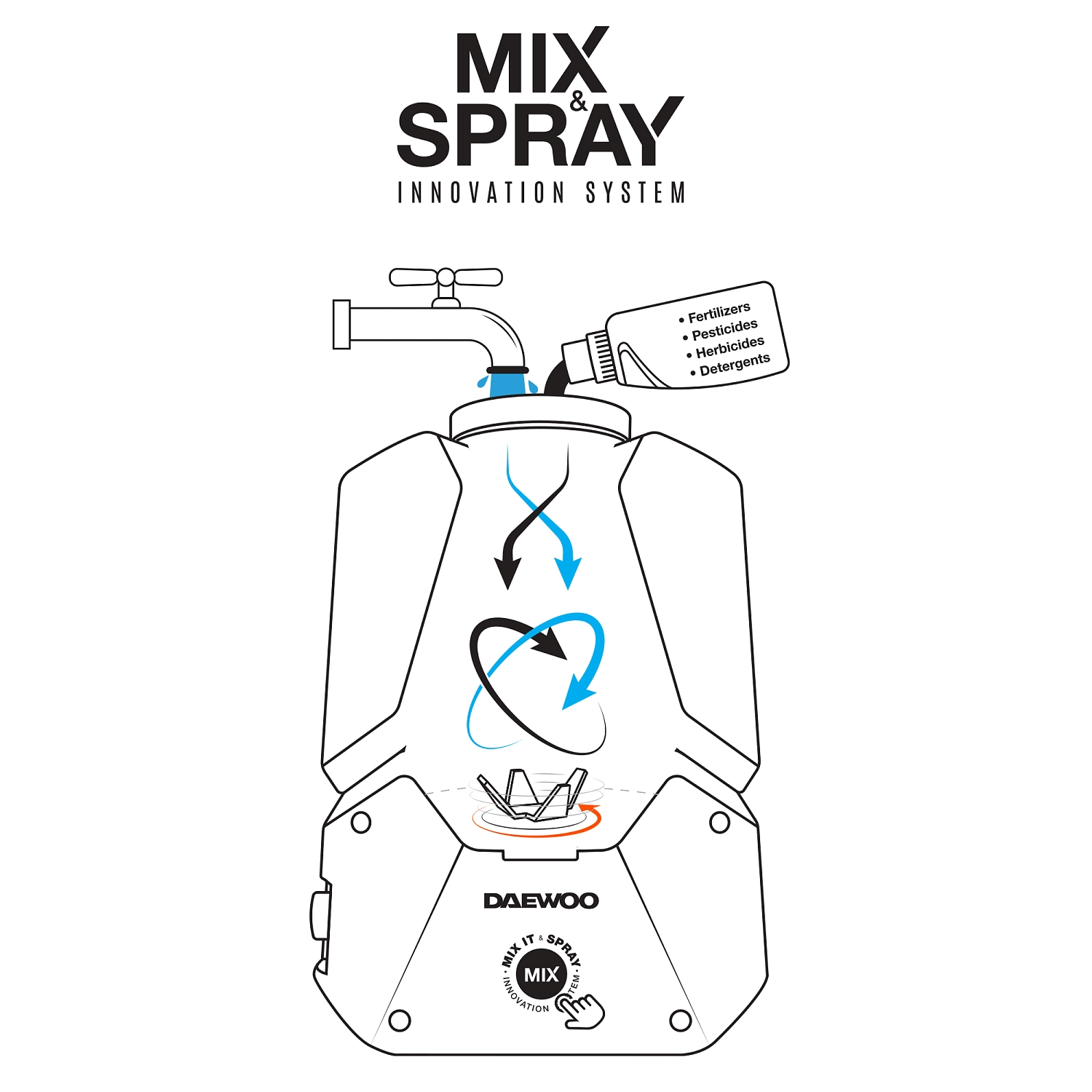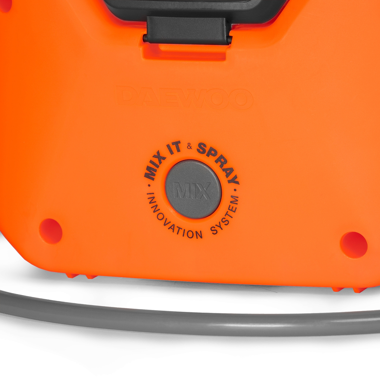Описание Опрыскиватель Daewoo DSA 1621Li SET 21В Li-ion единая платформа Модель совместима со всеми аккумуляторными инструментами и батареями DAEWOO линейки 21В. Функция смешивания MIX & SPRAY Раствор для распыления легко приготовить в самом баке опрыскивателя благодаря работе дополнительной помпы, которая создает водяной поток внутри бака и способствует эффективному растворению в воде пестицидов, гербицидов, удобрений или моющих средств. Плавная регулировка давления Удобный большой регулятор давления позволяет включить инструмент и настроить давление от 1,5 до 5 бар, при этом дальность струи может достигать 8 м Высокопроизводительная помпа Опрыскиватель оснащен мощным насосом, который обеспечивает производительность до 3 л/мин, что позволяет распылять более 350 л жидкости на одном заряде аккумулятора. Функция Auto Stop, которая отключает насос при отсутствии распыления и экономит заряд батареи, увеличит время работы опрыскивателя до 20%. Широкая горловина с фильтром грубой очистки Широкая горловина опрыскивателя делает наполнение бака очень удобным, а установленный на ней фильтр грубой очистки предотвращает попадание крупных частиц в бак и защищает насос от повреждения. 6 насадок в комплекте Широкий набор насадок, идущих в комплекте, позволяет подобрать оптимальную для выполнения задач по уходу за садом, дезинфекции и нанесению моющих средств.