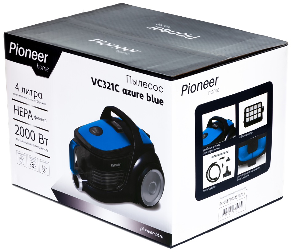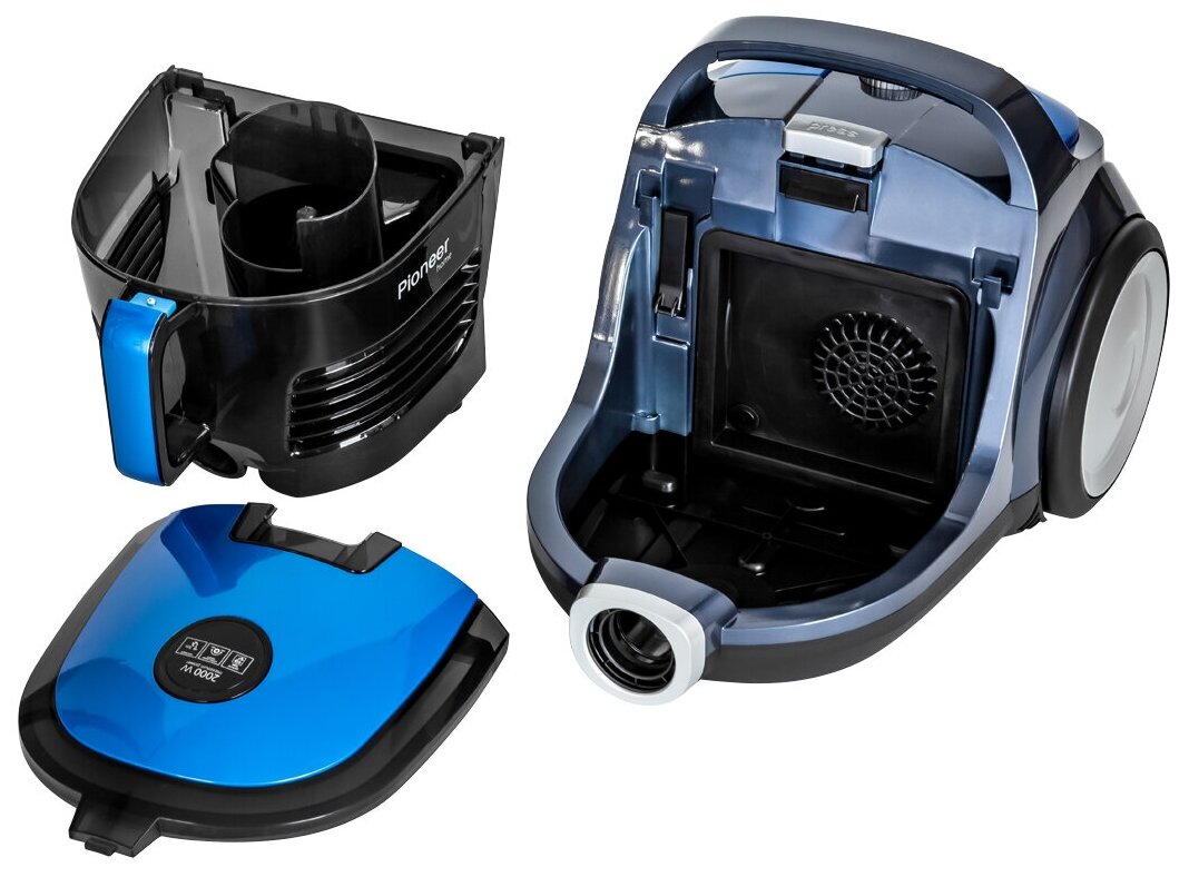 Описание Пылесосы Pioneer VC321C Azure Blue Компактный и надежный бытовой пылесос Pioneer VC321C идеально подходит для эффективной и быстрой уборки любых помещений. За счет циклонной системы и двухступенчатого выпускного фильтра будет гарантирована очистка помещения даже от мельчайших частиц пыли. Фильтр тонкой очистки HEPA эффективно очистит выдуваемый воздух от микрочастиц размером от 0,1 мкм до 1,0 мкм. Благодаря металлической телескопической трубке и специальному кронштейну, Вы без труда сможете отрегулировать ее длину и сменить насадки. Длины кабеля (4,7 м) вполне достаточно для свободной уборки помещения. Уход за пылесосом предельно прост: моющиеся фильтры промываются холодной водой, а мусор из контейнера увеличенного объема 3,5 литра вытряхивается в мусорное ведро. О заполнении контейнера оповестит LED индикация.
