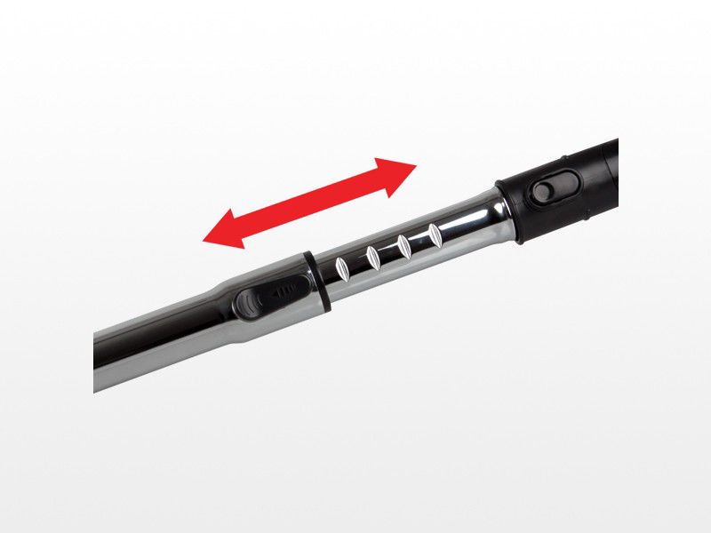 Модель оснащена турбощеткой, предназначенной для уборки ворсистых ковров, сбора волос, шерсти животных и подобного мусора, а также напольной щеткой с переключателем, при помощи которой вы уберете грязь с ковров или с гладких поверхностей. Для вашего удобства предусмотрена возможность регулировки телескопической трубки всасывания.