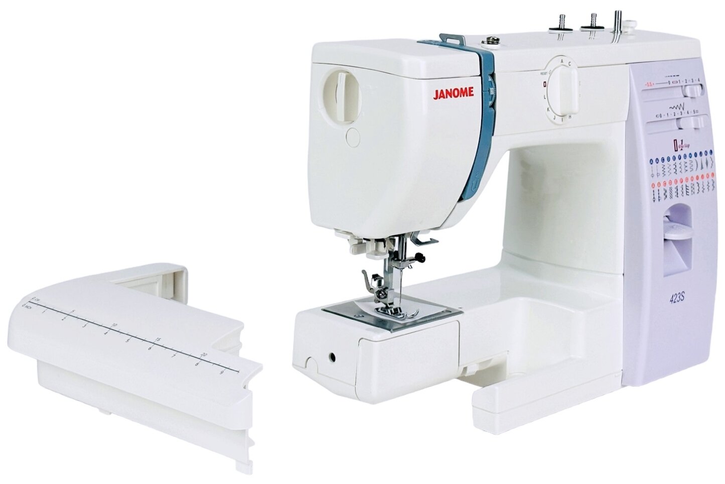 Описание Швейная машина Janome 423S Надежная и мощная швейная машина Janome 423S в то же время очень легка в использовании и станет удобным и функциональным инструментом в руках и новичка, и профессионала. Шейте, подшивайте, ремонтируйте одежду и домашний текстиль — эта компактная машинка поможет вам создать шедевры и продлить жизнь вещам без лишних усилий и экономя время. Она подойдет и для оснащения профессионального ателье, ведь имеет широкий функционал. Швейная машина Janome 423S имеет в своем арсенале сразу 25 швейных операции, которые пригодятся для разного вида шитья. Машинка отлично прошивает даже сложенную в несколько слоев джинсовую ткань, драп и справится с совершенно разными изделиями. Вместе с этой машинкой вы получите также полный набор всех инструментов и аксессуаров для шитья и пластиковый чехол для хранения.