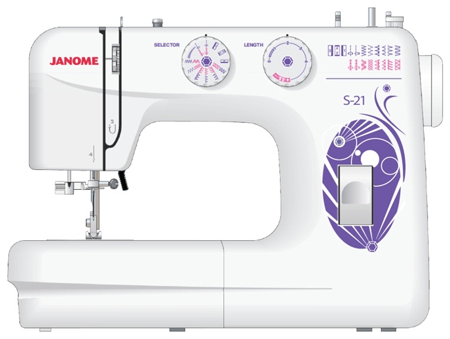 Janome S-21 – электромеханическая швейная машинка, которая, будучи достаточно недорогой, способна удивить своими техническими возможностями.