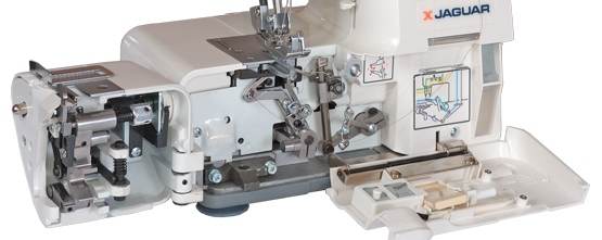 В оверлоке Jaguar M 4952 D вся заправка показана на рисунке, который расположен на корпусе оверлока. Имеет возможность обрабатывать края двух, трех и четырех ниточным швом. Для работы на оверлоке Jaguar M 4952 D достаточно правильно заправить оверлок, как показано на рисунке. Данная модель хорошо справляется со средними типами тканей. Может работать не только с бобинами, но и с обычными катушками.