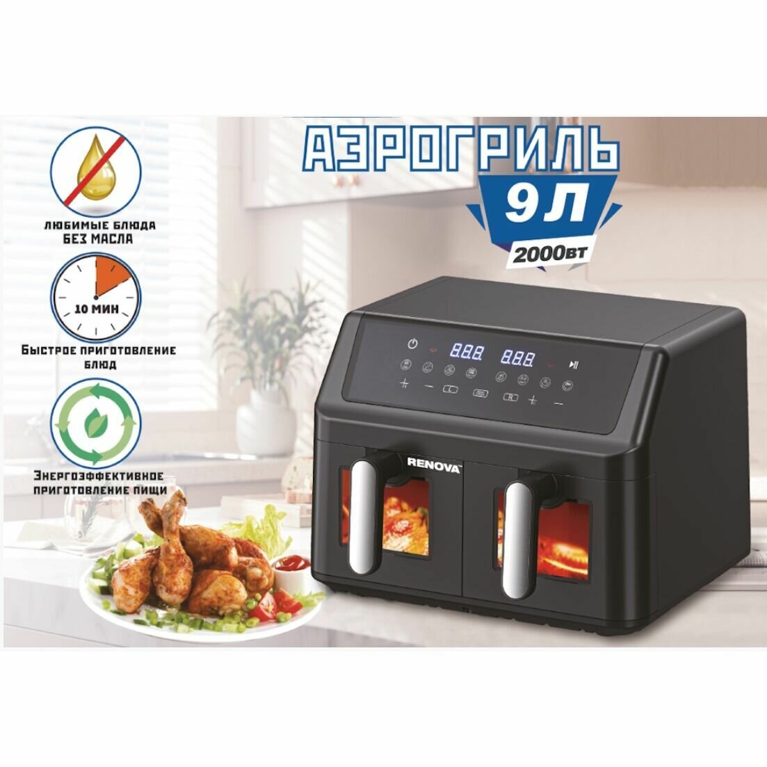 Описание Аэрогриль Renova AF5-DTB2 Аэрогриль Renova AF5-DTB2 — это современное устройство для приготовления пищи которое сочетает в себе функциональность гриля и уникальную технологию аэрогриля. Обеспечивает равномерное распределение тепла и позволяет готовить блюда без добавления масла. Благодаря компактному дизайну и удобной конструкции легко встраивается в любую кухню. Преимущества устройства включают быстрое приготовление блюд экономию времени и энергии а также возможность готовить здоровые и полезные блюда. Аэрогриль легко очищается и обеспечивает равномерный нагрев что делает его идеальным выбором для повседневного использования.