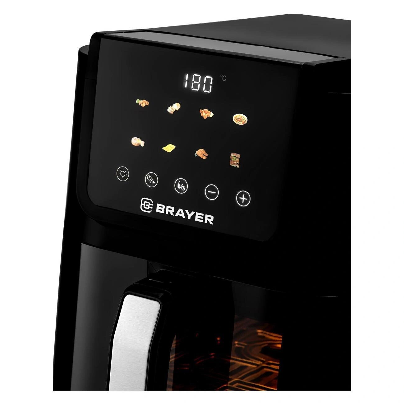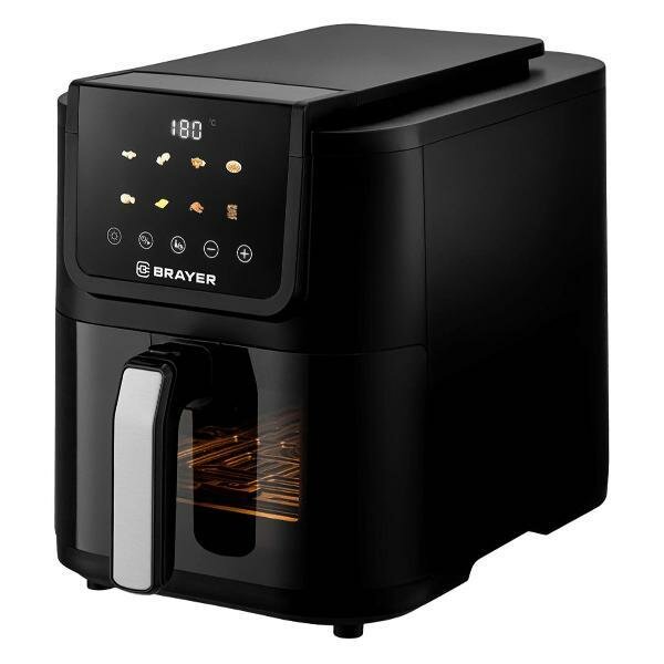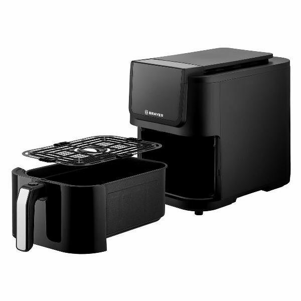Описание Аэрогриль Brayer BR-2041 Аэрогриль BRAYER BR-2041 - это современное устройство для приготовления пищи, которое сочетает в себе функциональность и удобство использования. Одной из ключевых особенностей аэрогриля является его мощность в 1500 Вт. Это обеспечивает быстрое и равномерное нагревание, что позволяет готовить разнообразные блюда с минимальными затратами времени. Объем чаши аэрогриля составляет 5 литров, что позволяет приготовить достаточное количество пищи для большой семьи или компании друзей. Аэрогриль оснащен съемной решеткой, что облегчает процесс очистки и позволяет использовать его для приготовления различных блюд. Устройство имеет LCD-дисплей и таймер, что позволяет контролировать процесс приготовления и устанавливать время. Максимальное время установки таймера составляет 0,6 часа, что позволяет точно следовать рецептам и не пережаривать продукты. Аэрогриль BRAYER BR-2041 имеет 8 автоматических программ, что позволяет выбрать оптимальный режим для приготовления различных блюд. Дополнительными преимуществами являются удлинённая корзина, смотровое окно и внутренняя подсветка, которые делают процесс приготовления пищи еще более удобным и приятным. Аэрогриль выполнен в стильном черном цвете, что делает его не только функциональным, но и эстетически привлекательным устройством на вашей кухне.