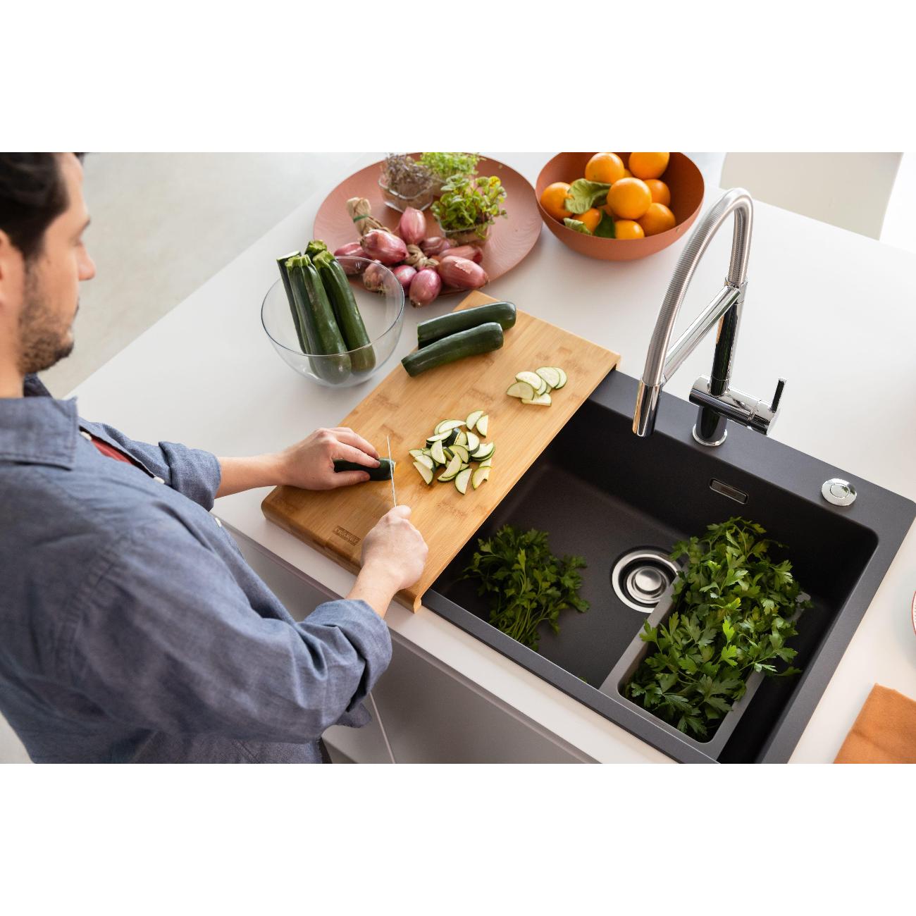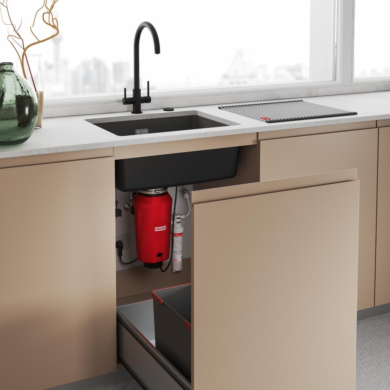 Описание Измельчитель пищевых отходов Franke SLIM 75 Измельчитель пищевых отходов Franke SLIM 75 — сбалансированное решение для современной кухни, сочетающее надёжность, компактность и высокую эффективность. Это бытовое устройство работает в режиме непрерывной переработки, позволяя загружать органические остатки в процессе измельчения без остановки мотора. В его основе — магнитный двигатель, отличающийся долговечностью, устойчивостью к перегреву и низким уровнем износа даже при регулярной эксплуатации. Мощность в 0,75 лошадиных сил (720 Вт) в сочетании со скоростью вращения диска 2700 оборотов в минуту обеспечивает уверенный размол широкого спектра отходов: от кожуры и стеблей до мелких костей, яичной скорлупы и кофейной гущи. При этом конструкция гарантирует тихую и плавную работу, минимизируя вибрацию и шум — особенно ценно в условиях городских квартир и небольших домов. Особое преимущество модели — её ультракомпактные габариты: высота составляет всего 38,6 см, а диаметр — рекордно малые 16 см. Такие размеры позволяют легко разместить устройство даже под самыми узкими мойками, не нарушая эргономики кухонного пространства. Вес в 5,2 кг свидетельствует об использовании лёгких, но прочных материалов, обеспечивающих устойчивость и простоту монтажа. Конструкция не включает острых лезвий — измельчение происходит за счёт центробежной силы и ударных элементов, что повышает безопасность и снижает риск повреждений при обслуживании. Агрегат совместим с большинством канализационных систем и не требует регулярного технического вмешательства. Он эффективно устраняет необходимость хранения пищевых отходов в мусорном ведре, предотвращая появление неприятных запахов и привлечение насекомых. Franke SLIM 75 — это идеальный выбор для тех, кто ищет практичное и надёжное решение для ежедневной утилизации отходов. Он сочетает в себе швейцарскую инженерную точность, энергоэффективность и заботу о комфорте, делая кухонный быт чище, проще и современнее.