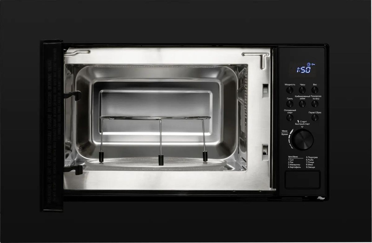 Описание Встраиваемая микроволновая печь (СВЧ) Weissgauff HMT-620 B Grill Встраиваемая микроволновая печь Weissgauff с объемом 20 литров, выполненная в черном цвете, равномерно разогревает еду при помощи поворотного стола, а также оснащена грилем с возможностью работы в комбинированном режиме и набором программ автоменю! Объем 20 литров дает вам полную уверенность в том, что вы сможете разместить в ней сразу весь необходимый объем пищи! Поворотный стол диаметром 245 мм не только обеспечивает равномерный прогрев блюда со всех сторон, но и удобно извлекается из камеры, делая легкими его очистку и уход Камера из нержавеющей стали воплощает в себе надежность и качество, ведь её стенки прочные, устойчивые к перепадам температур и механическим воздействиям, а также легко отмываются от возникающих загрязнений Автоменю на 9 программ открывает по-настоящему богатые возможности по настройке вашей микроволновой печи под требуемые особенности продуктов. Встроенный гриль - позволит готовить вам аппетитное мясо, рыбу или овощи, поджаренные до хрустящей корочки! Комбинированные режимы - при которых микроволны и гриль работают вместе, дополняя друг друга, открывают еще больше возможностей по приготовлению в данном устройстве! Разморозка по весу - позволит подготовить замороженные продукты к дальнейшему приготовлению, обеспечивая равномерный результат без перегретых краев или непроработанных участков внутри. Блокировка от детей, благодаря которой вы всегда сможете избежать ненужных нажатий на элементы управления, например, во время уборки микроволновой печи или, чтобы предотвратить её незапланированное включение детьми. Сочетание кнопочного и поворотного управления - это настоящая гордость Weissgauff, ведь кнопочный блок является интуитивно понятным, а механический поворотный элемент невероятно отзывчив и удобен в обращении. Удобный цифровой дисплей с крупной индикацией позволит сделать процесс взаимодействия с микроволновой печью еще более комфортным и простым Дизайн, выполненный в закаленном стекле, станет финальным штрихом в совершенстве великолепного облика этой модели. Каждый раз, взаимодействуя с вашей микроволновой печью от Weissgauff, вы будете чувствовать, что это не только функциональное устройство, но и настоящее украшение вашей кухни!