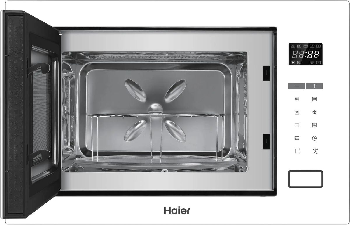 Описание Встраиваемая микроволновая печь (СВЧ) Haier HMX-BTG259W Встраиваемая микроволновая печь Haier HMX-BTG259W – это идеальный выбор для тех, кто ищет качественную и надежную микроволновку. Она имеет объем 25 литров и мощность микроволн 900 Вт, что позволяет быстро и эффективно разогревать пищу. Преимущества микроволновой печи Haier HMX-BTG259W: Сенсорные переключатели обеспечивают удобство управления. Режимы работы – микроволны, гриль и разморозка – позволяют выбрать оптимальный вариант для приготовления пищи. Функция автоматического приготовления позволяет быстро приготовить различные блюда. Автоматическая разморозка и звуковой сигнал отключения облегчают использование. Подсветка камеры и кнопка +30 сек упрощают использование.