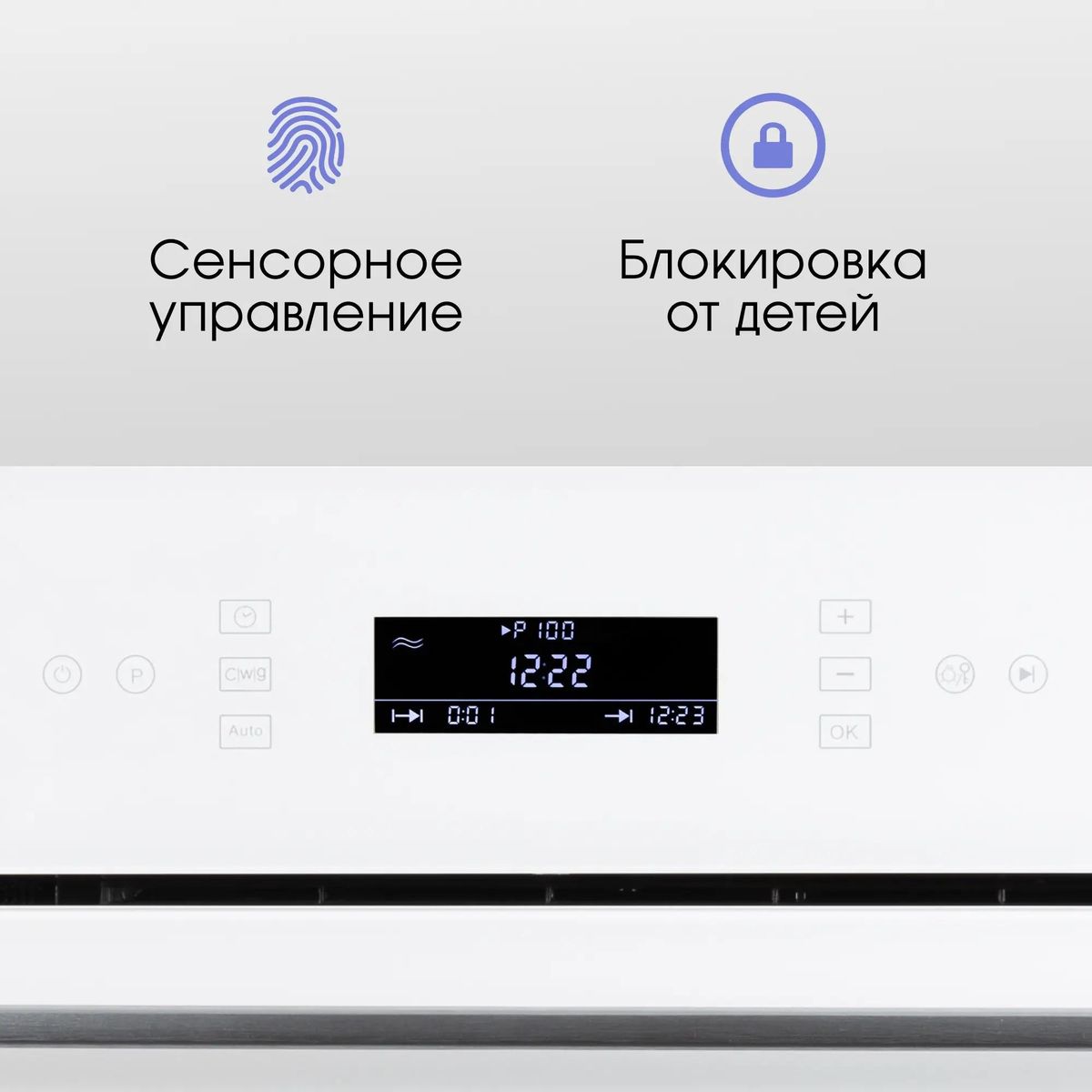 звуковой сигнал окончания приготовления, регулировка мощности, подсветка, блокировка от детей |
