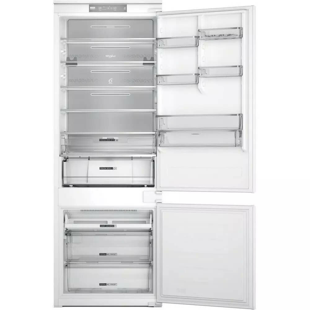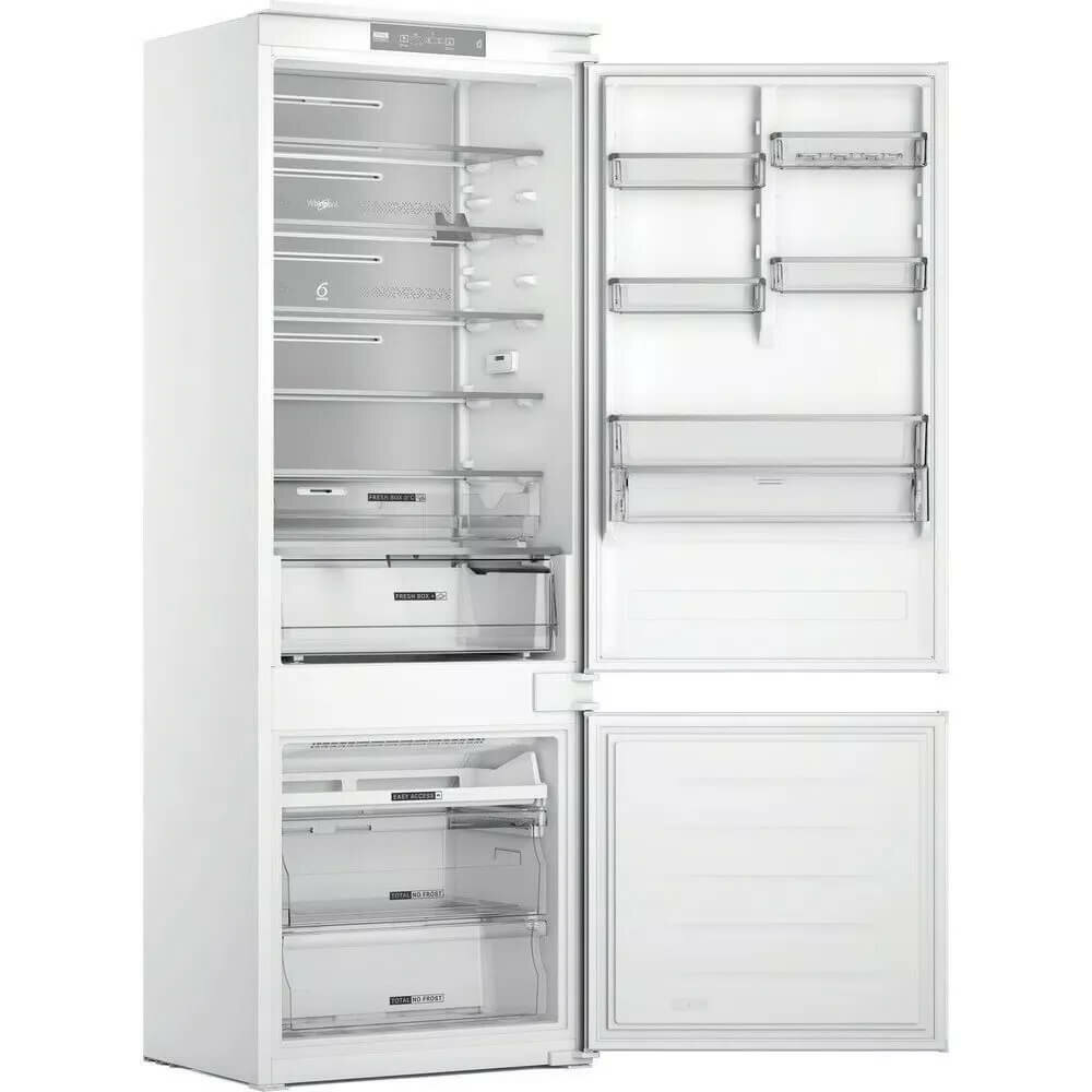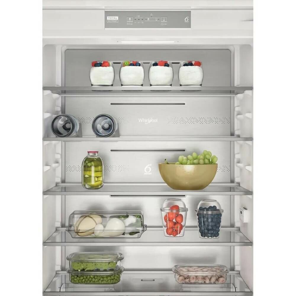 Описание Встраиваемый холодильник Whirlpool WH SP70 T122 Система Total No Frost холодильника с морозильной камерой Whirlpool WH SP70 T122 предотвращает образование льда в морозильной камере и инея в камере холодильника. Технология 6th Sense контролирует температуру внутри и автоматически регулирует ее при необходимости. Внешний вид Multi Flow Идеальный внутренний вид. Современный дизайн и элегантный внешний вид системы Multi Flow делают холодильник элегантным даже внутри. Управление пространством Столько места, сколько вам нужно Инновационный дизайн холодильника/морозильника Whirlpool дает вам пространство и универсальность, необходимые для удобного и легкого хранения продуктов и напитков. Полка для бутылок Безопасное хранение Благодаря специальной балконной полке холодильник Whirlpool является идеальным местом для хранения бутылок. Стеклянные полки Любовь к красоте в каждой детали Холодильник Whirlpool имеет стеклянные полки, призванные объединить красоту и функциональность и обеспечить максимально удобное использование. Эверест Холодильник Everest имеет необычайно большое пространство для хранения. Режим отпуска Беззаботный отдых. Режим «Отпуск» позволяет перевести холодильник с морозильной камерой в режим ожидания, пока вы находитесь в отпуске. Двусторонние двери Для вашего удобства Холодильник с морозильной камерой Whirlpool оснащен перенавешиваемой дверцей, которую можно открывать как с правой, так и с левой стороны – все для вашего удобства. Сигнализация повышения температуры Создан для вашего спокойствия. Сигнал тревоги предупреждает вас, когда температура в холодильнике повышается, помогая предотвратить порчу продуктов. Вентиляция Этот холодильник с морозильной камерой Whirlpool оснащен вентилятором, который равномерно распределяет воздух по всему отсеку для лучшей вентиляции. НоФрост Без размораживания.Технология NoFrost снижает влажность в морозильной камере и предотвращает накопление льда. Быстрое охлаждение Быстрое охлаждение. Температура внутри холодильника сразу падает, как только вы кладете в него новые продукты. Встроенные датчики автоматически регулируют температуру охлаждения, что обеспечивает низкое энергопотребление и длительную свежесть.